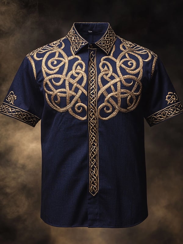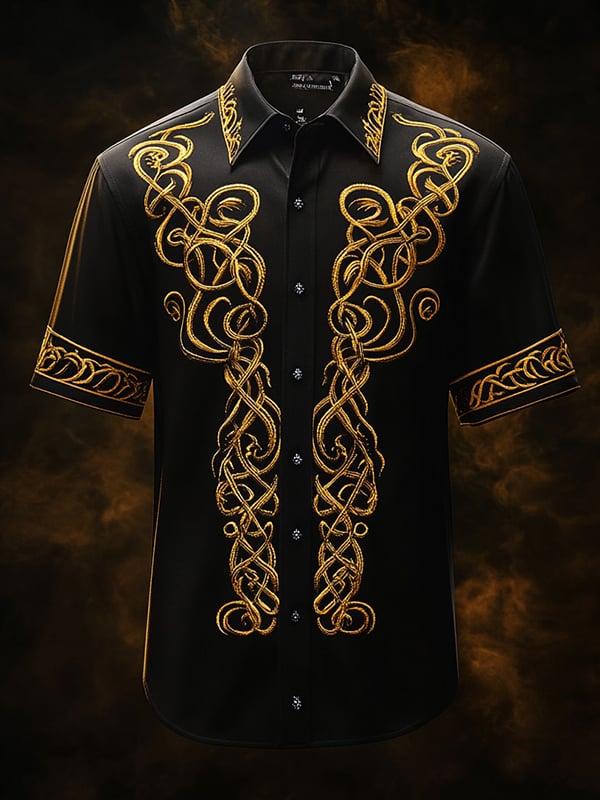 Men's Casual Dark Viking Print Satin Shirt