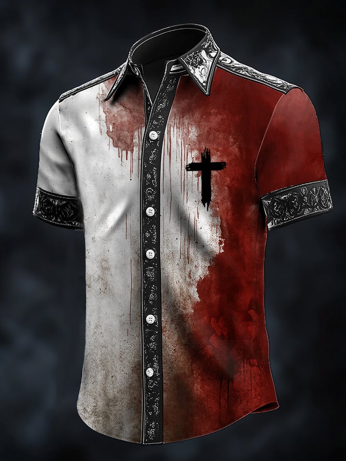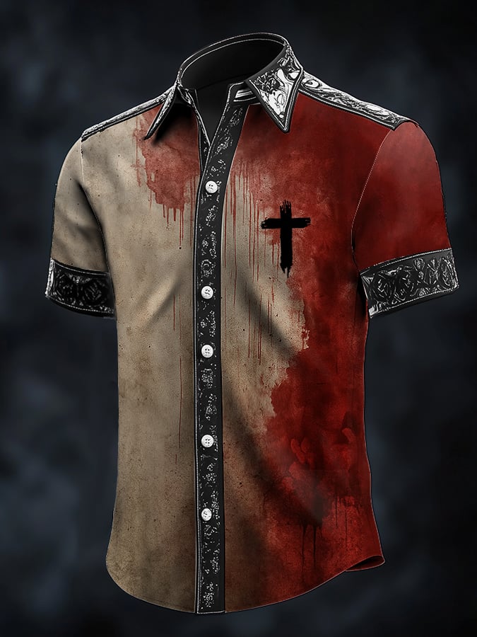 Men's Simple Bloodstained Satin Shirt