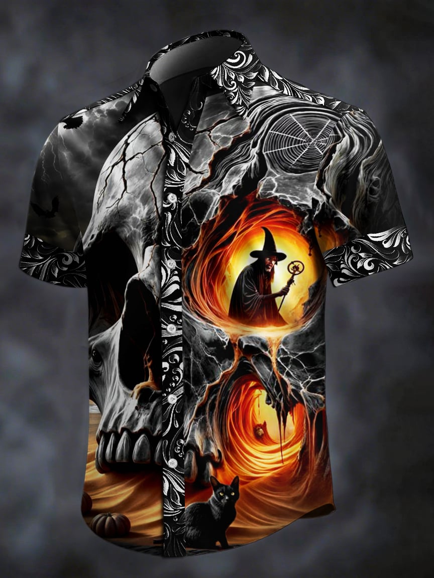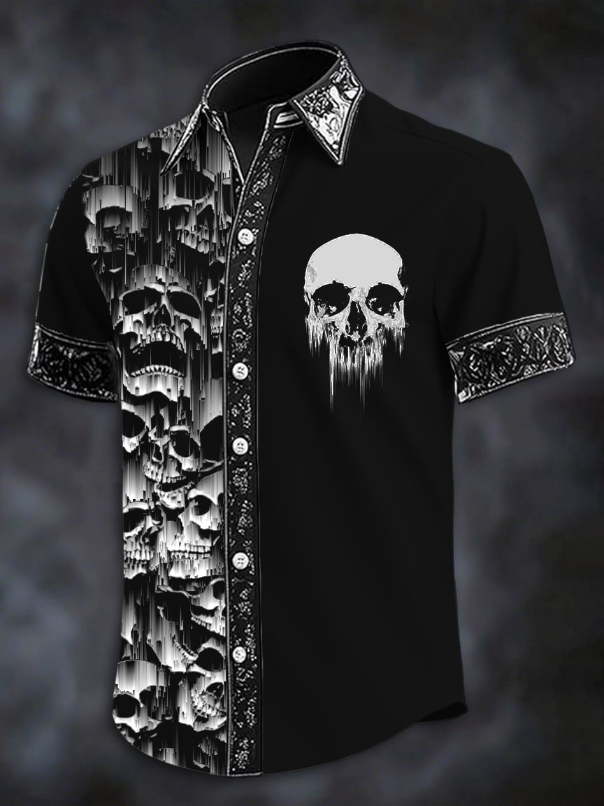 Men's Dark Skull Print Casual Short Sleeve Shirt