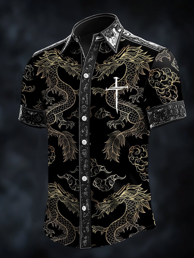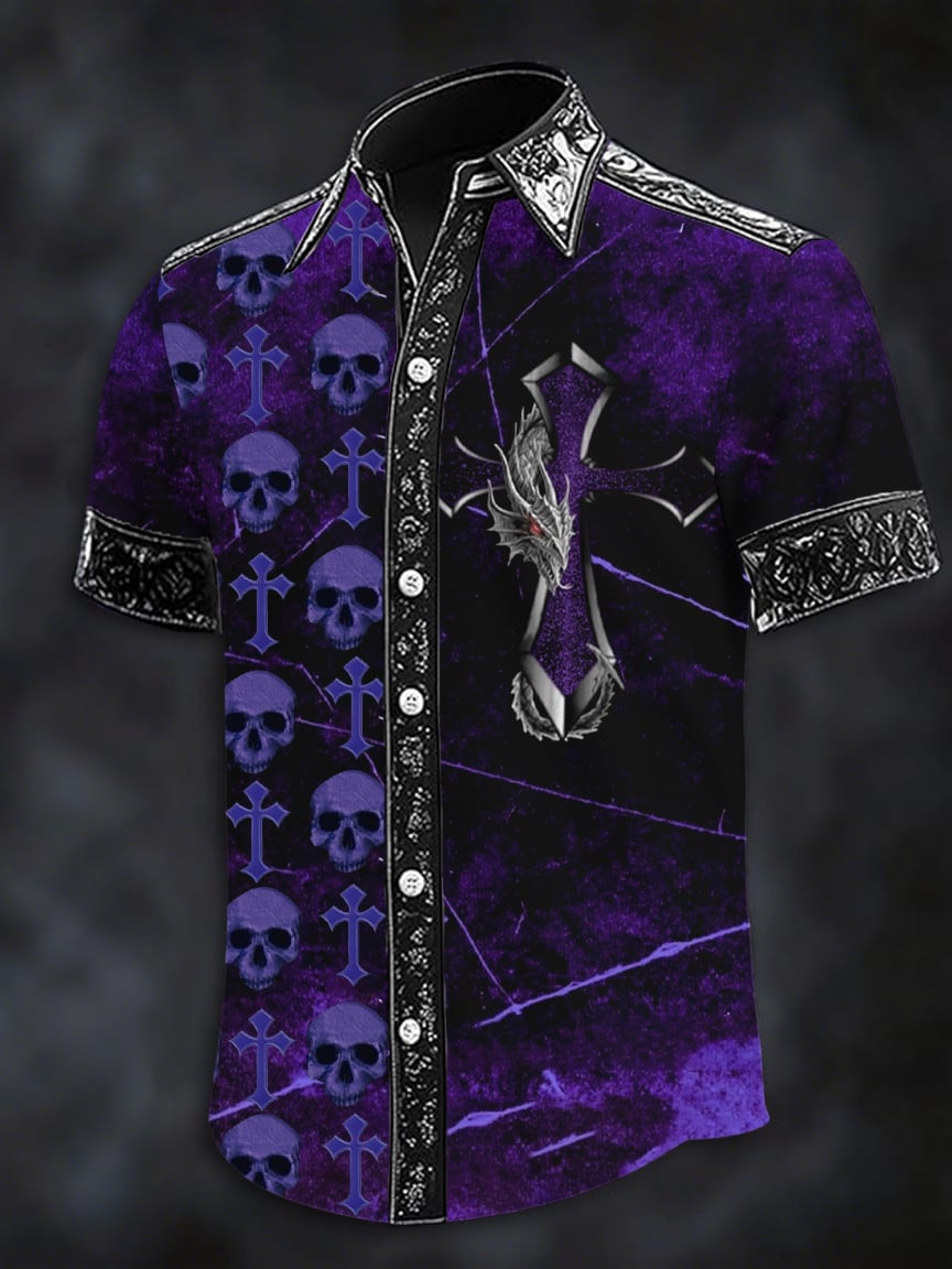 Men's Retro Dark Cross Print Short Sleeve Shirt