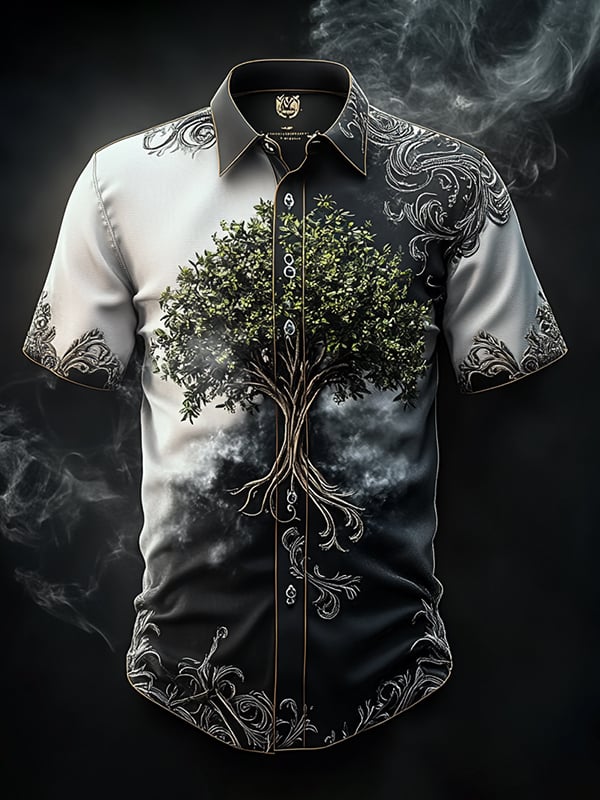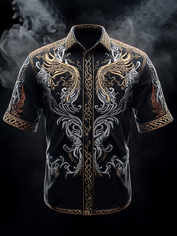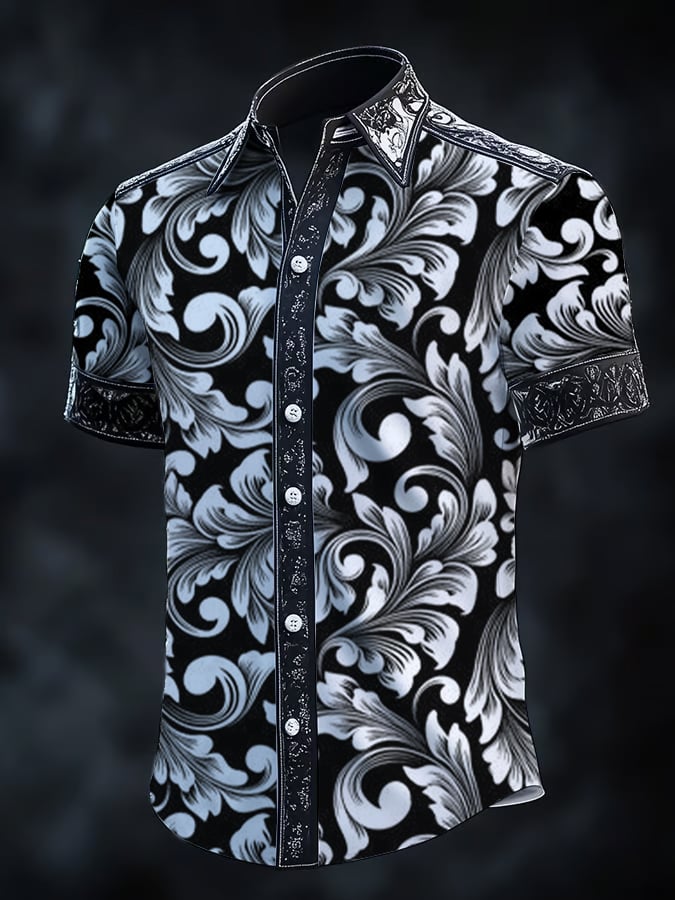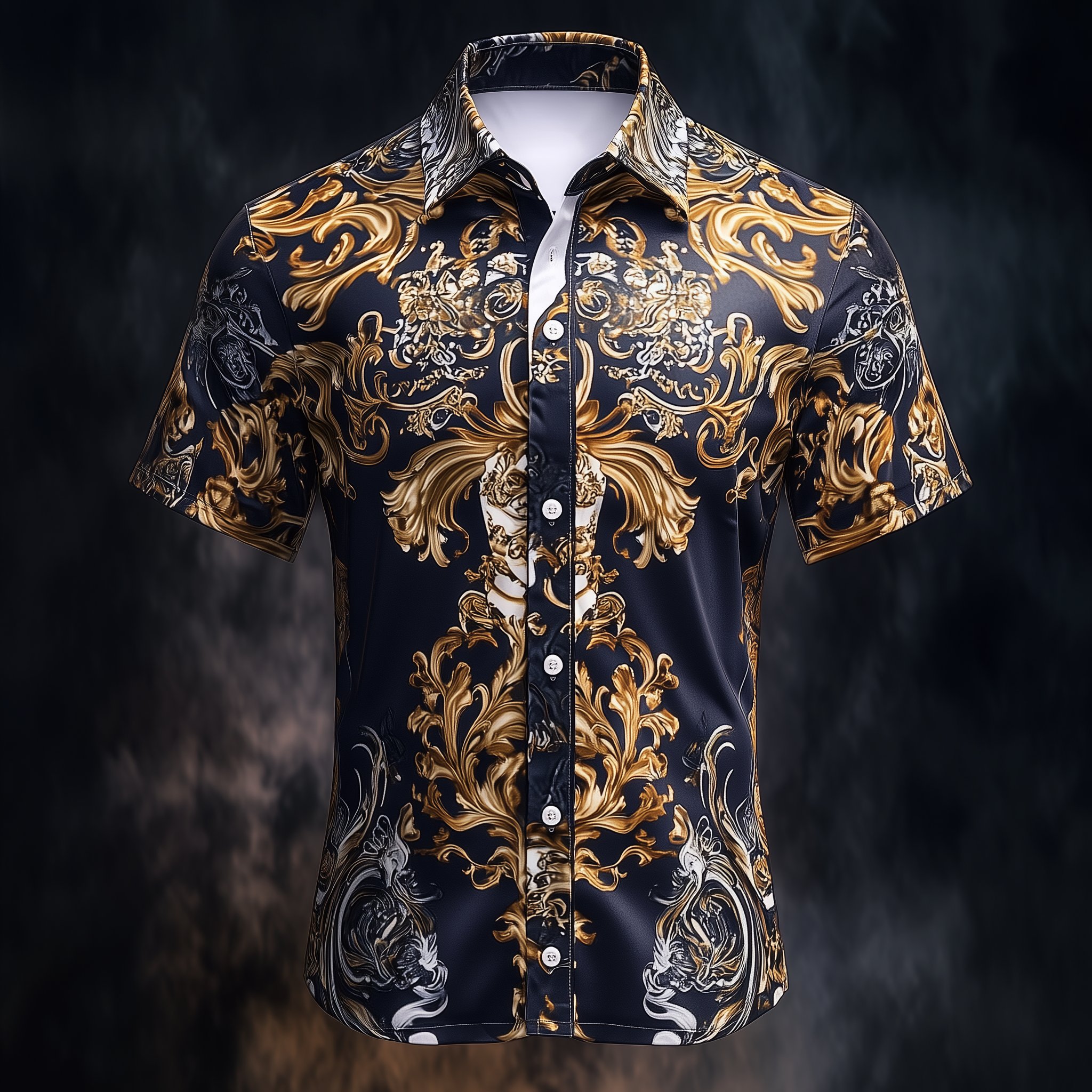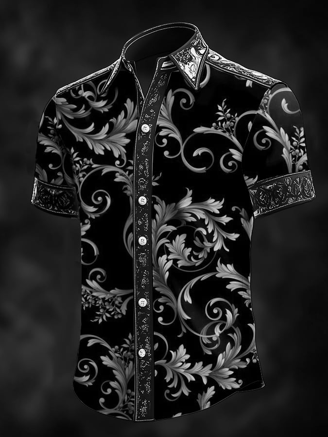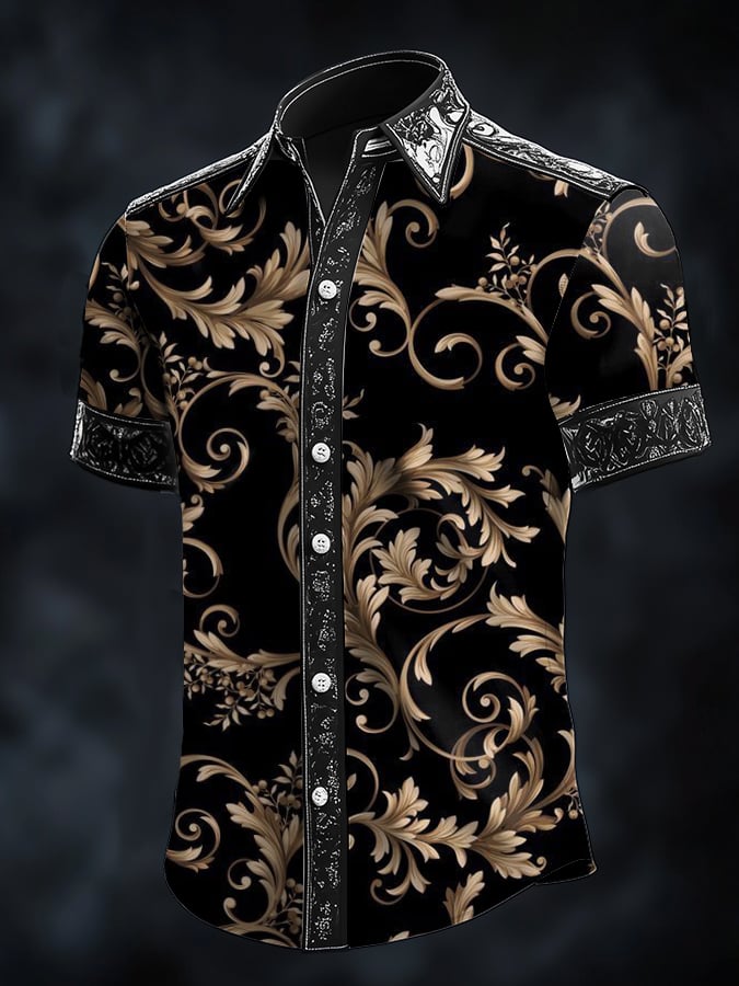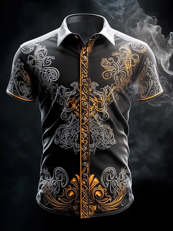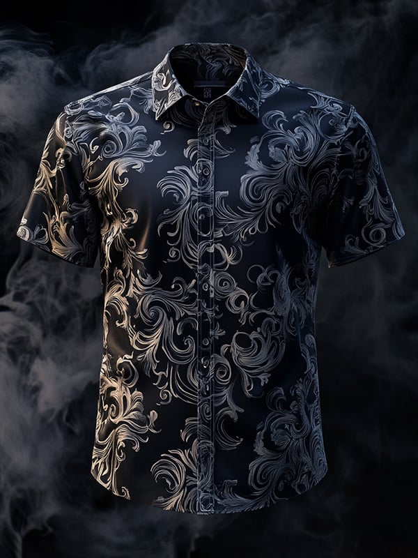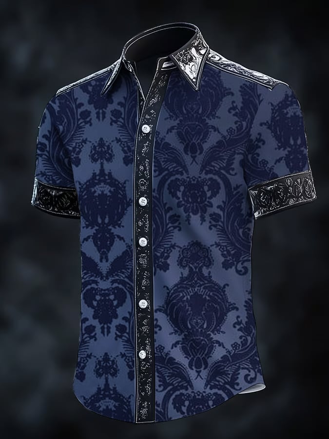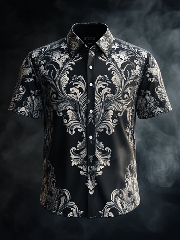 Men's Vintage Dark Baroque Print Short Sleeve Shirt
