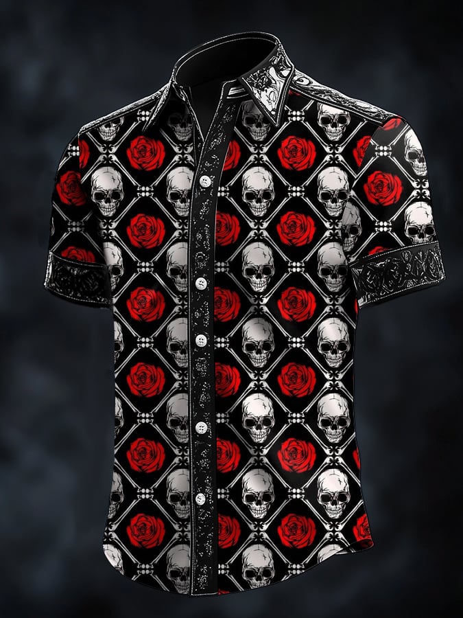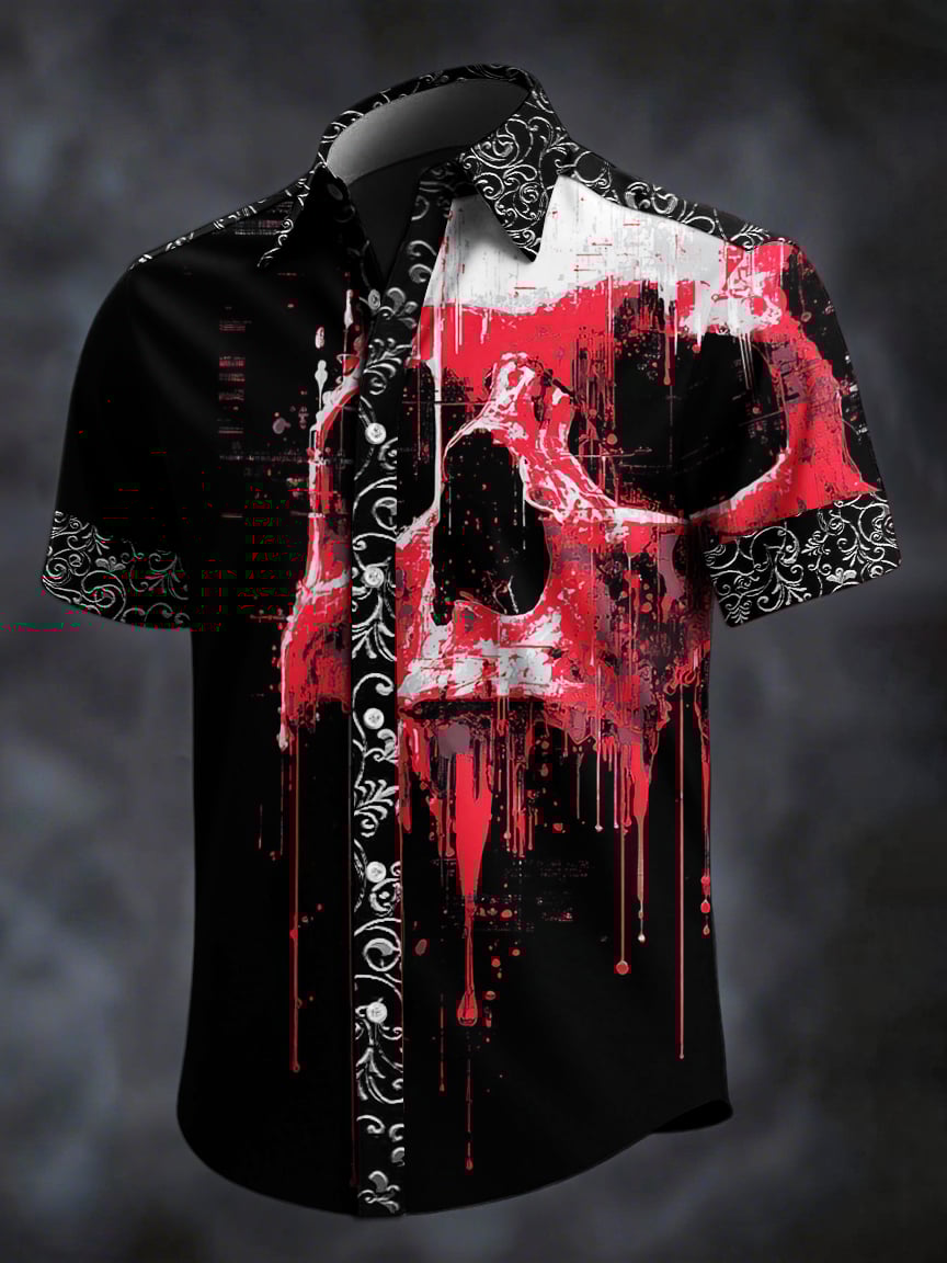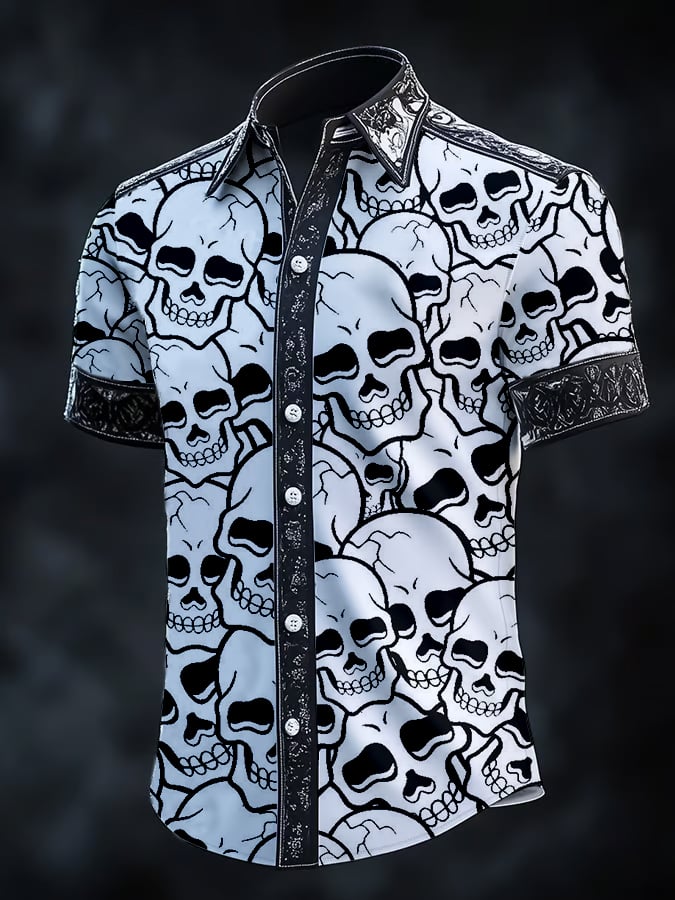 Men's Retro Skull Print Lapel Short Sleeve Shirt