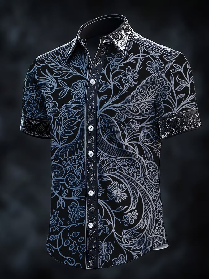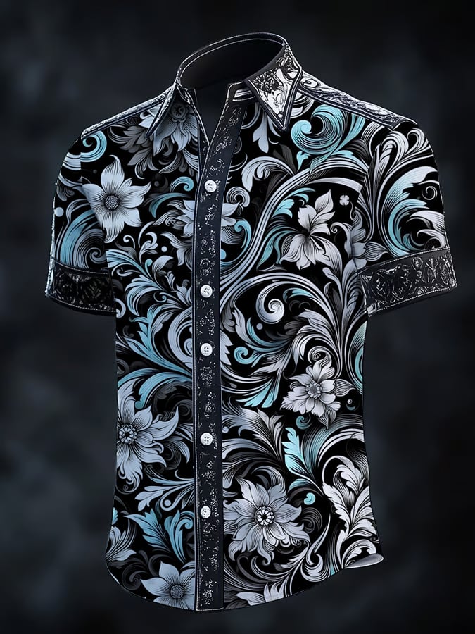 Men's Casual Vintage Floral Print Short Sleeve Shirt