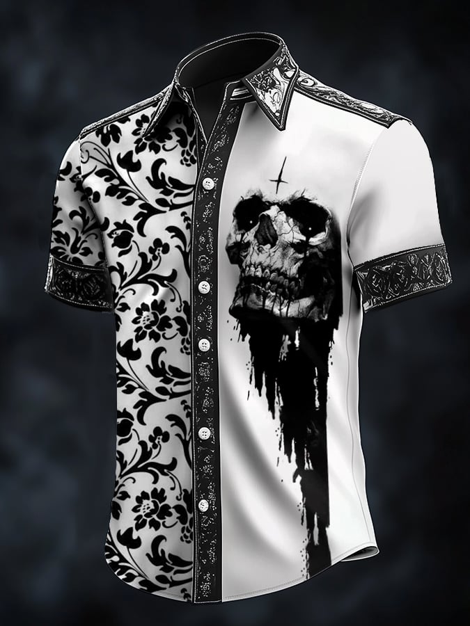 Men's Casual Fashion Dark Pattern Skull Contrast Shirt