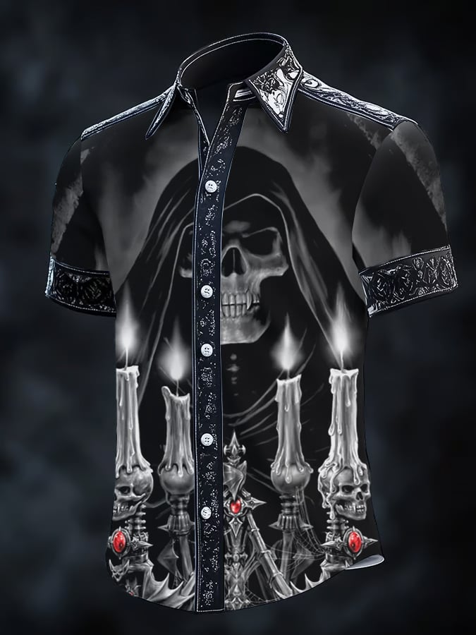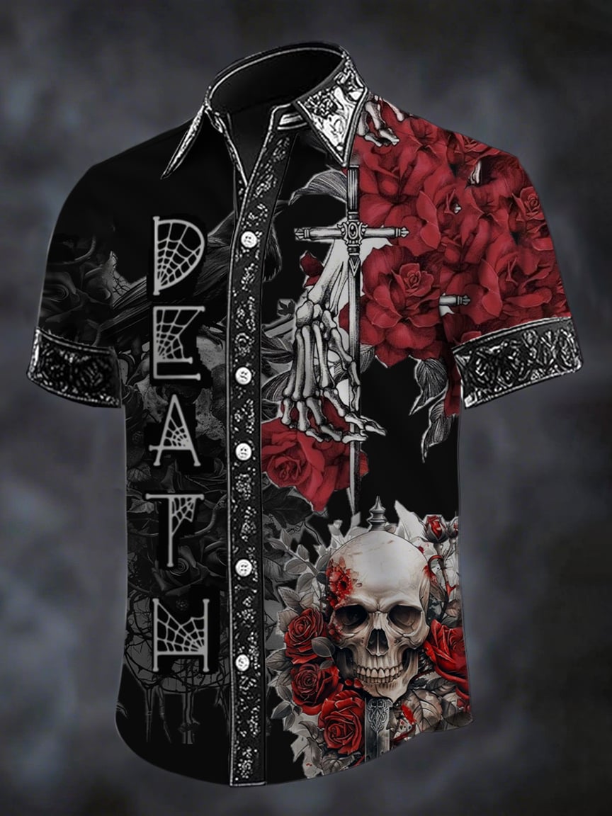 Men's Retro Skull Death Print Short Sleeve Shirt