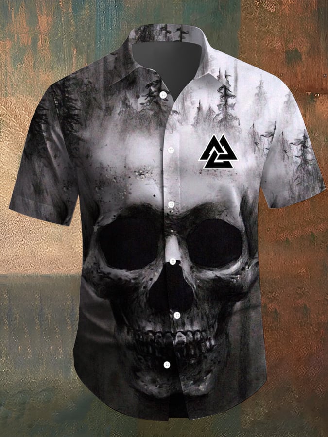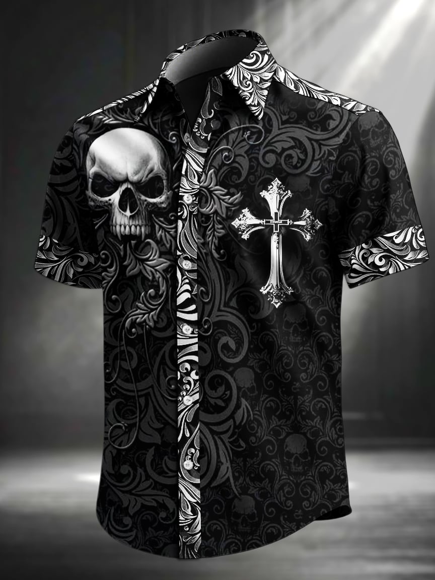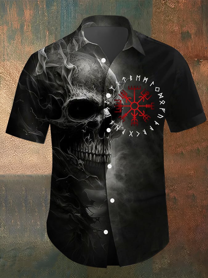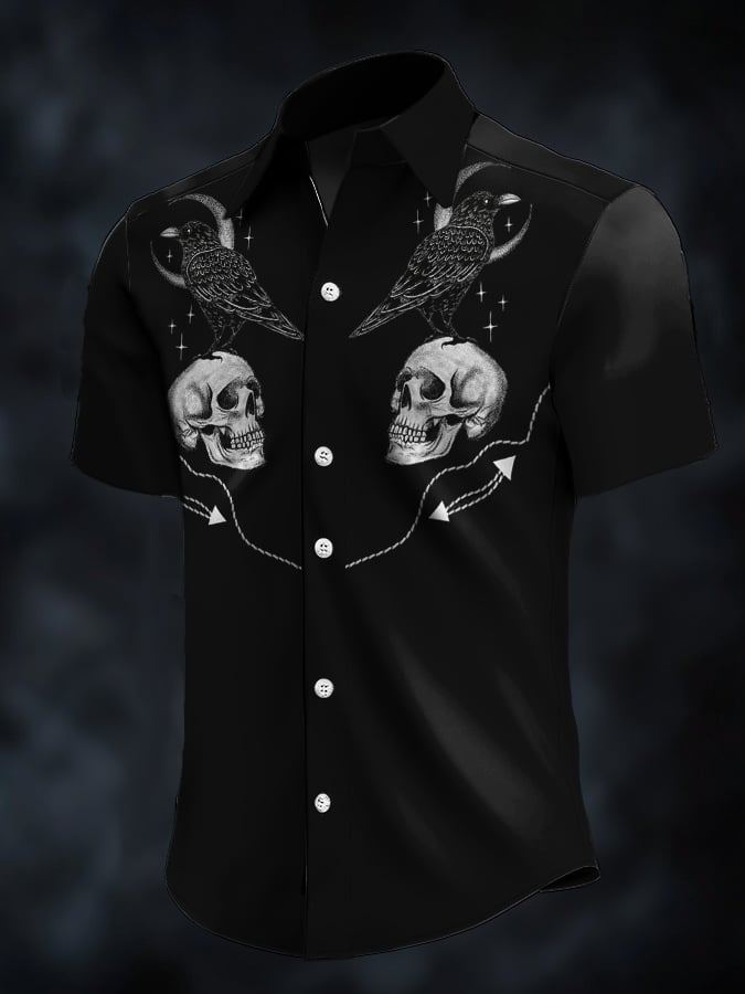 Men's Dark Skull Print Casual Short Sleeve Shirt