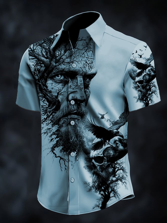 Men's Retro Viking Graphic Short Sleeve Shirt