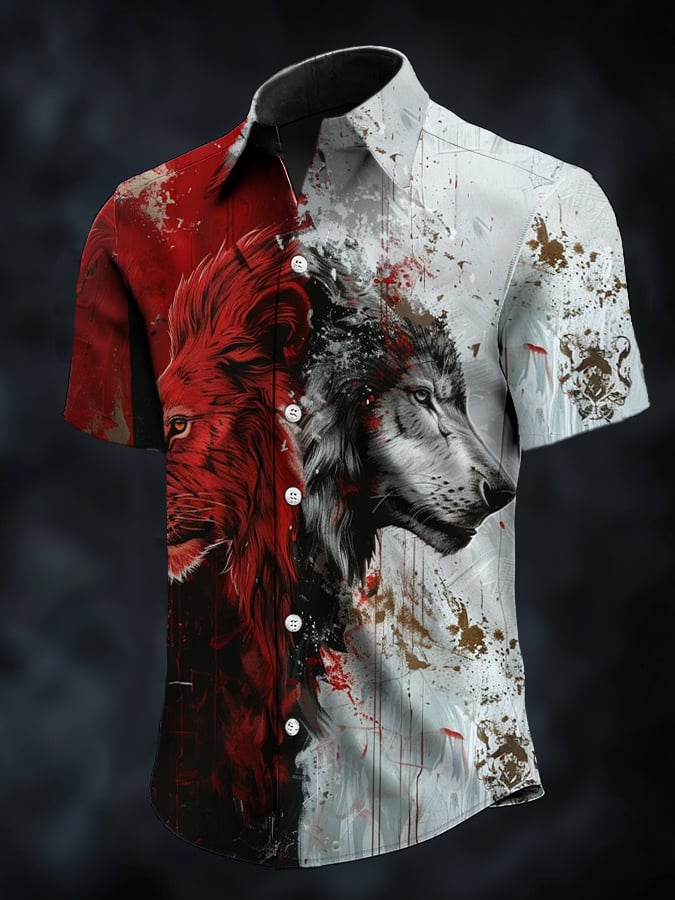 Men's Retro Western Contrast Print Short Sleeve Casual Shirt