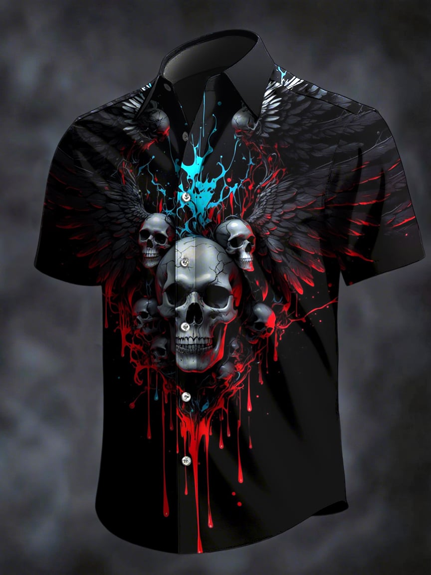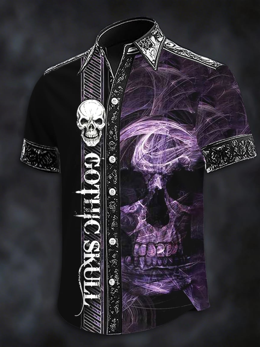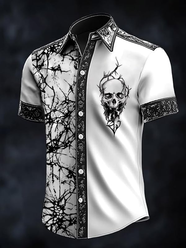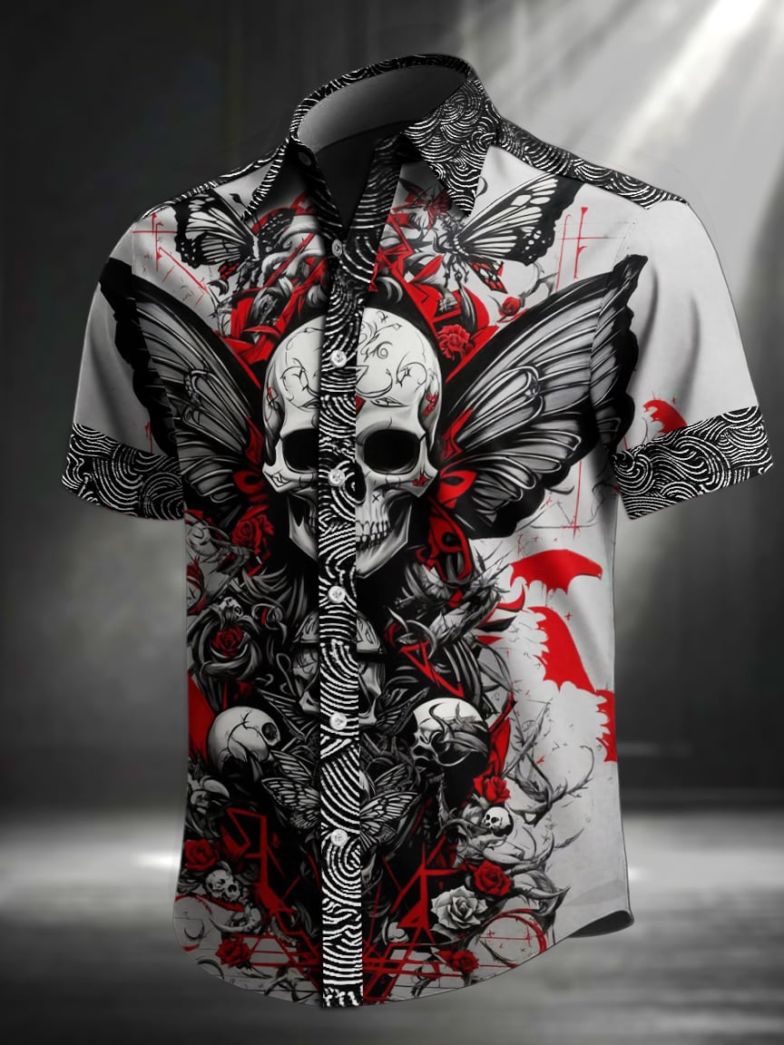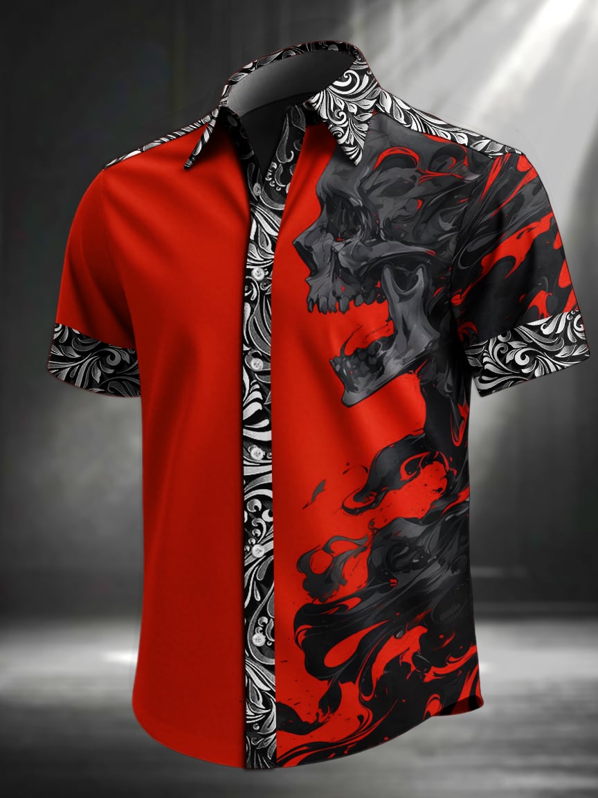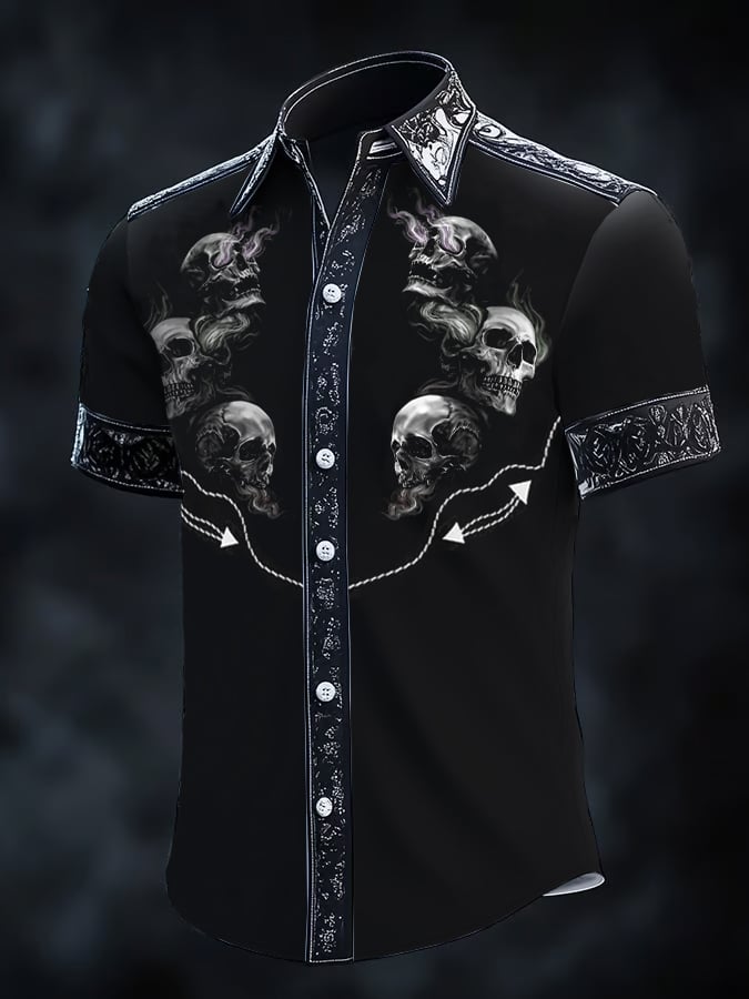 Men's Retro Horror Skull Print Lapel Short Sleeve Shirt
