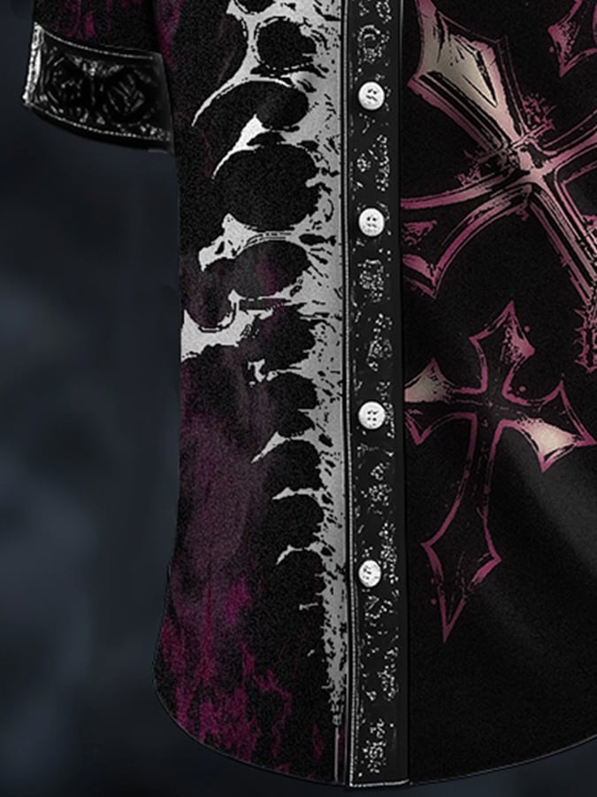 Men's Casual Fashion Dark Pattern Cross Crow Contrast Satin Shirt
