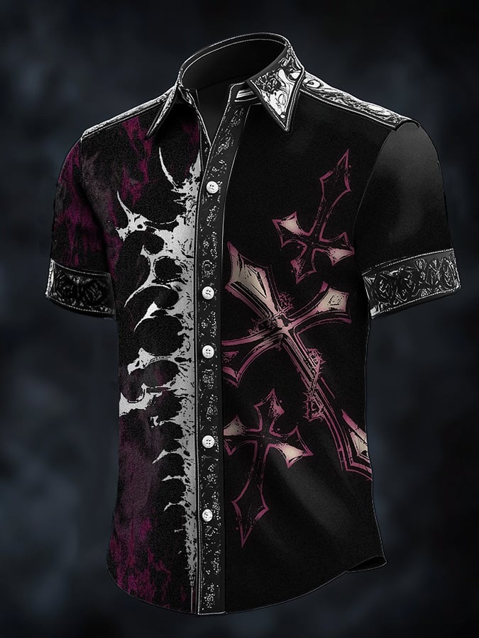 Men's Dark Gothic Skull Pattern Short Sleeve Shirt