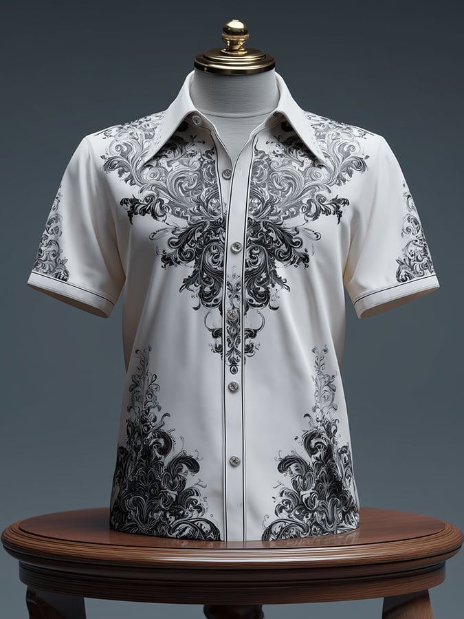 Men's Vintage Dark Baroque Print Short Sleeve Shirt