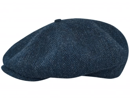 PEAKED CAPS - HARRIS TWEED Genuine Scottish Harris Tweed 8 Panels Man Cap Blue