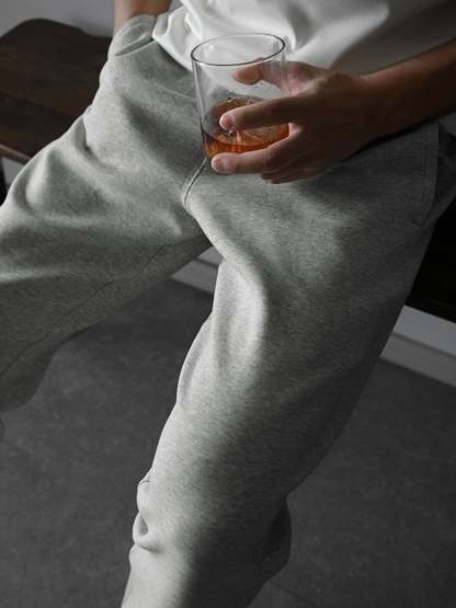 The ultimate lounge joggers for snuggling in and out of. Made from durable natural cotton fabric, these joggers feature a regular fit with slightly relaxed, ribbed wide leg cuffs and double pockets at the side seams. This piece pairs well with everything and keeps your muscles warmed up and ready to move.