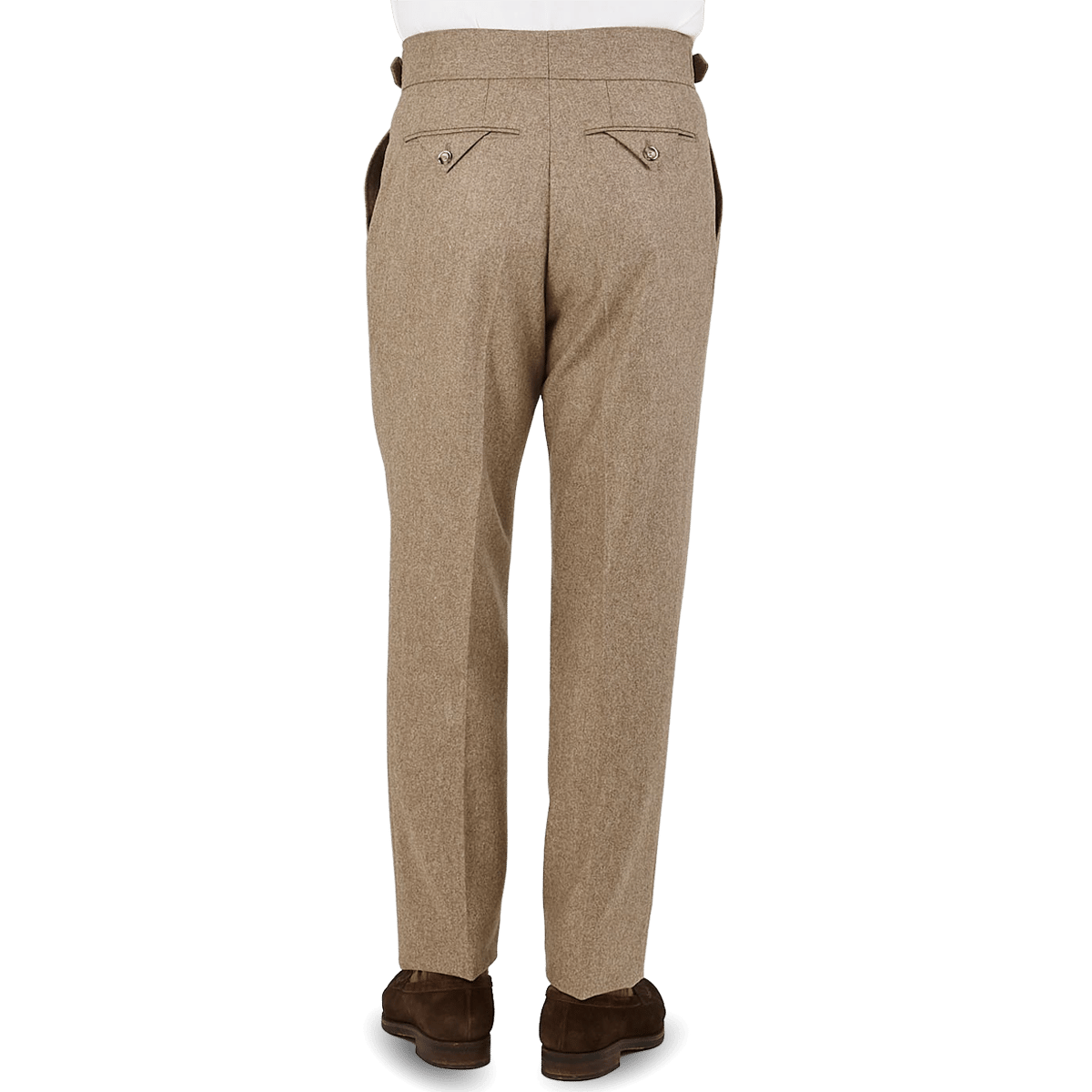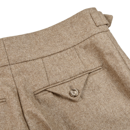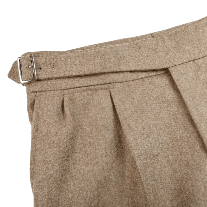 Light Brown Wool Flannel Pleated Gurkha Trousers