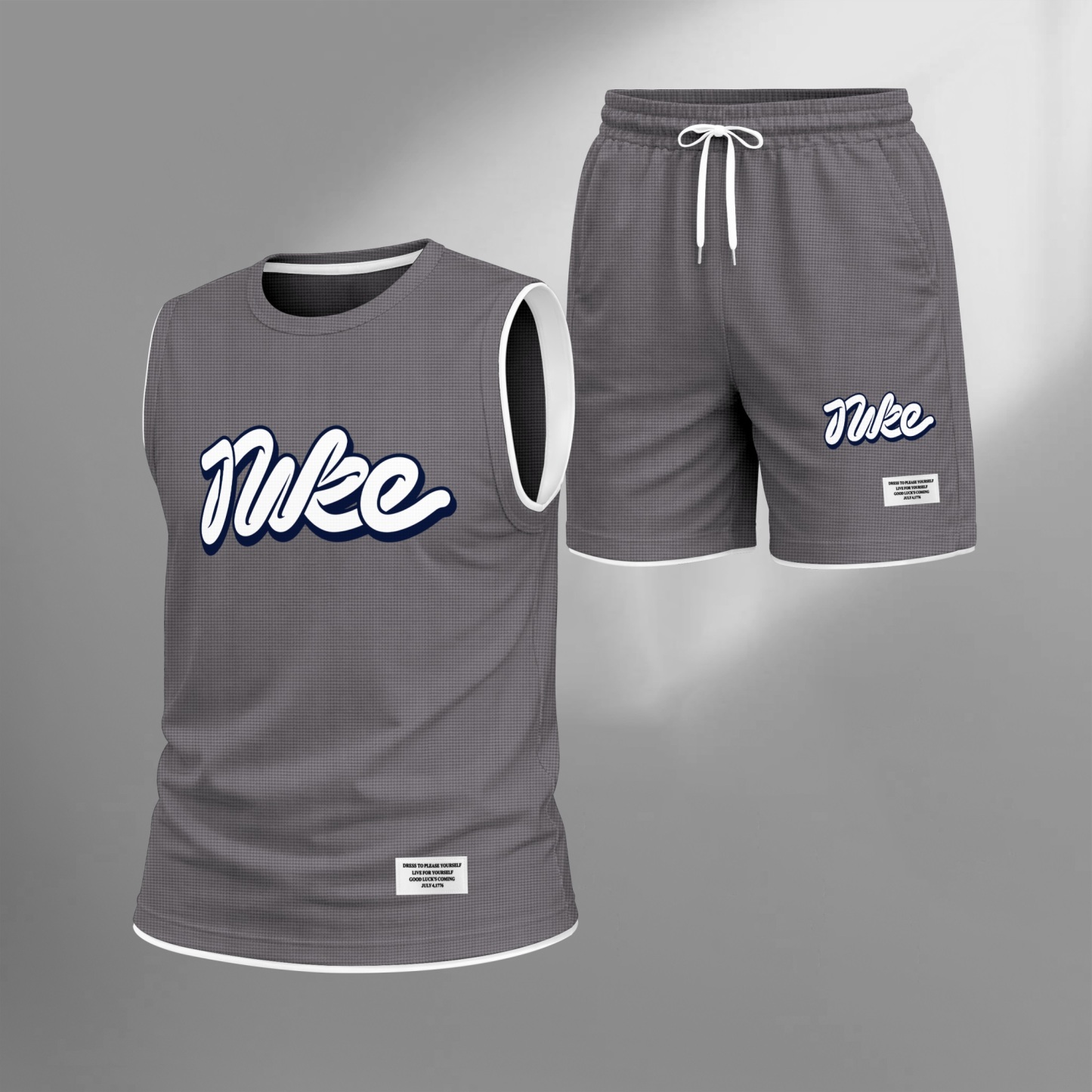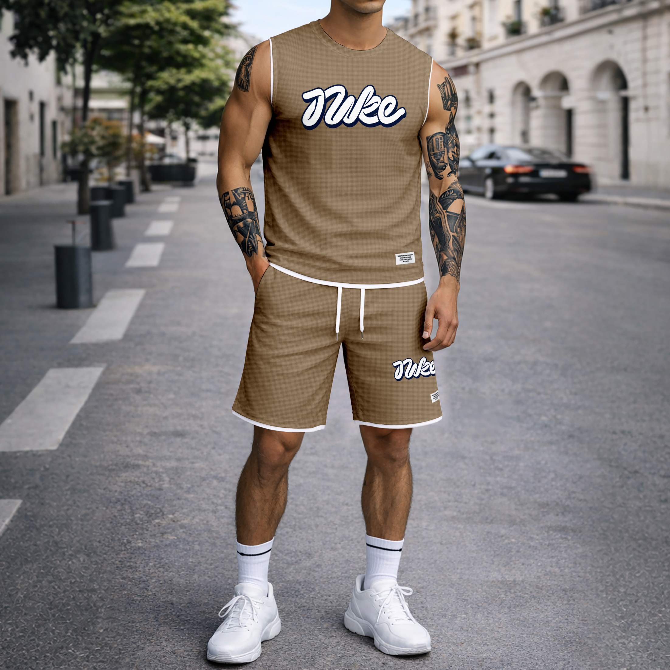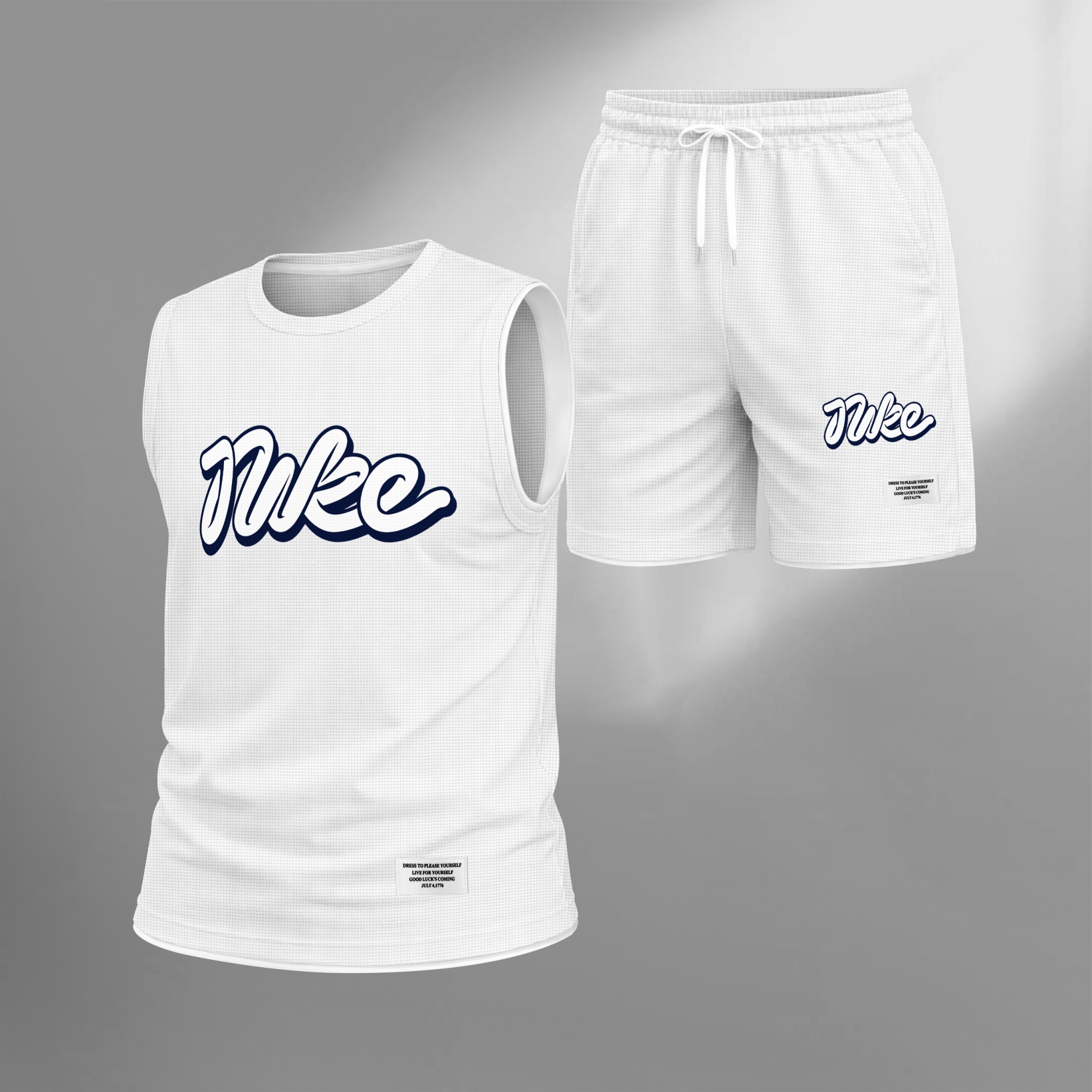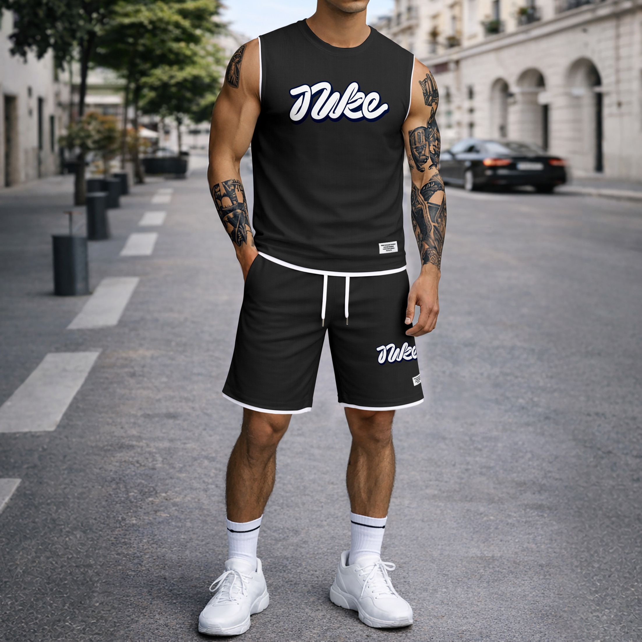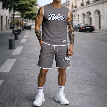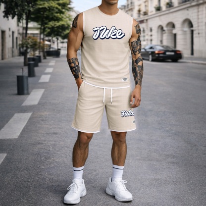 Men’s Graphic Letter Summer Set Sleeveless Tank Top & Shorts Matching Outfit, Lightweight Casual Streetwear Athletic Set for Everyday & Holiday