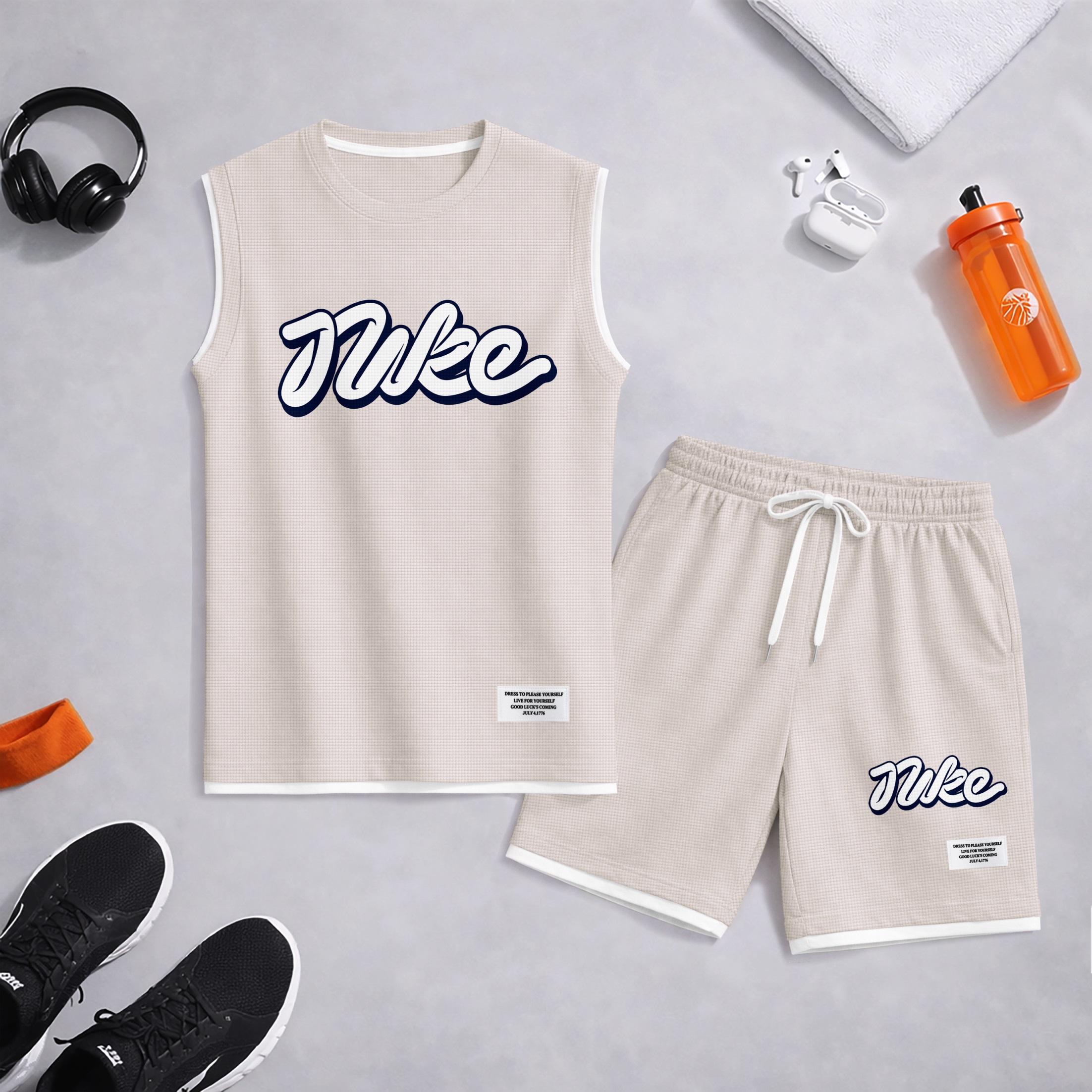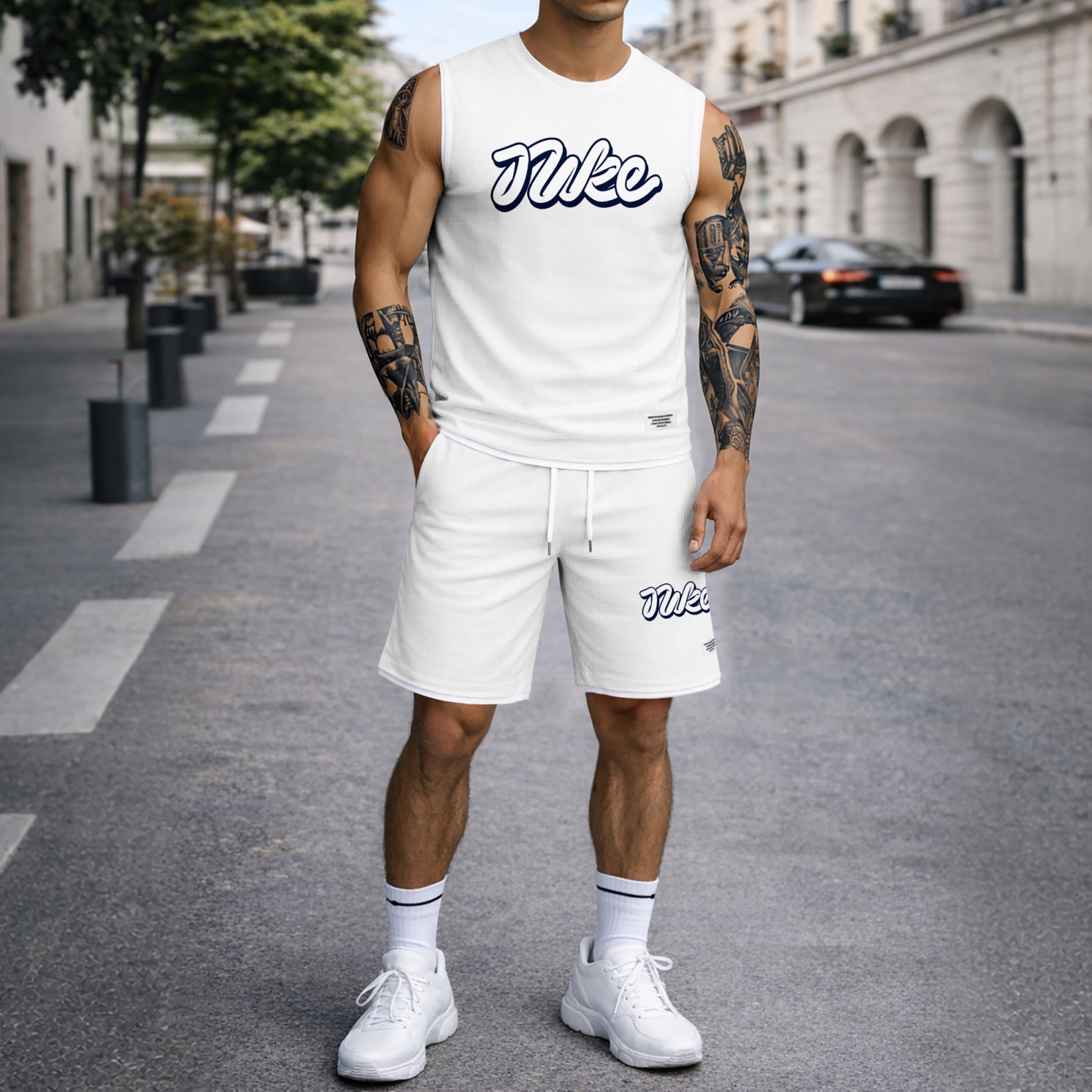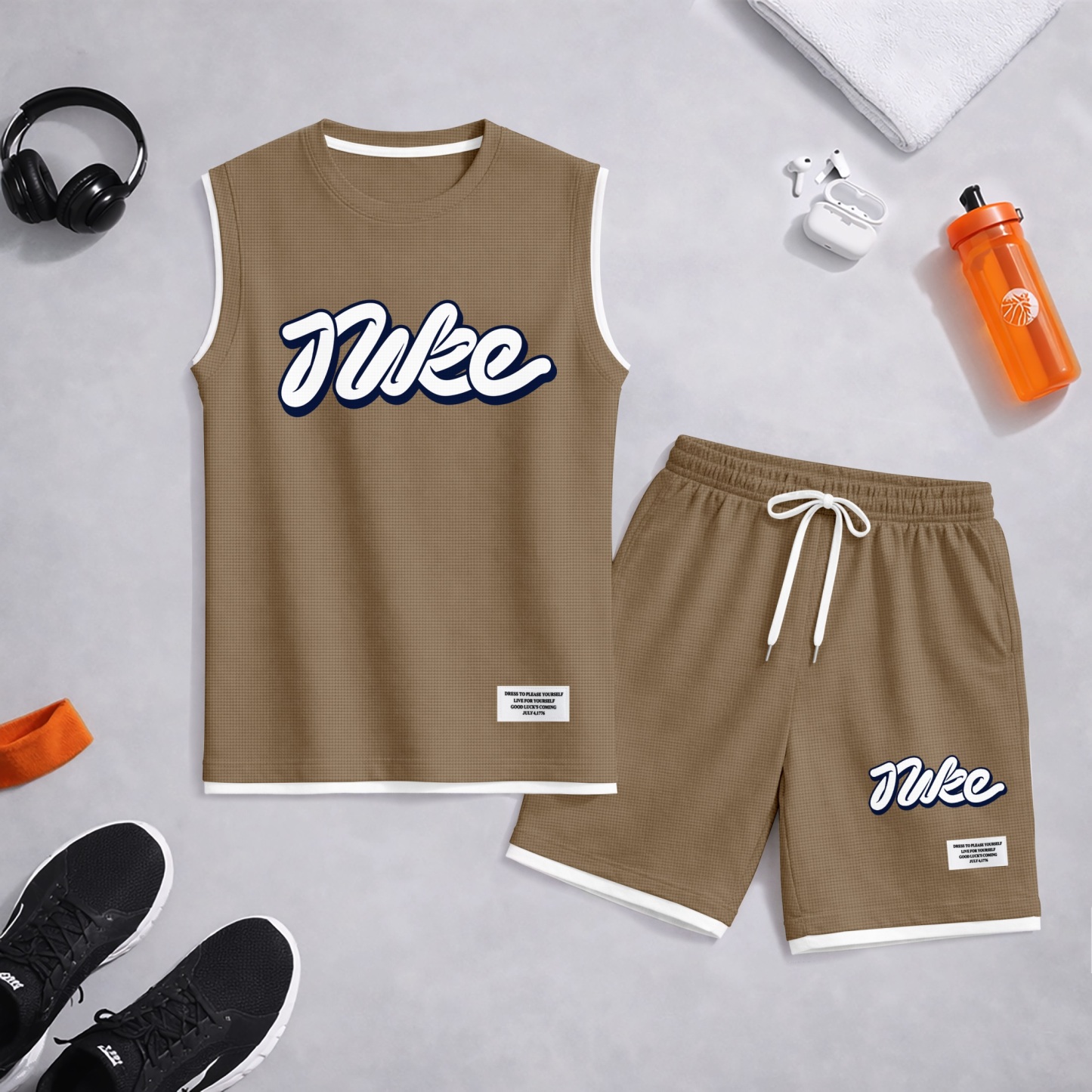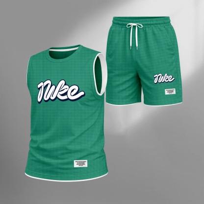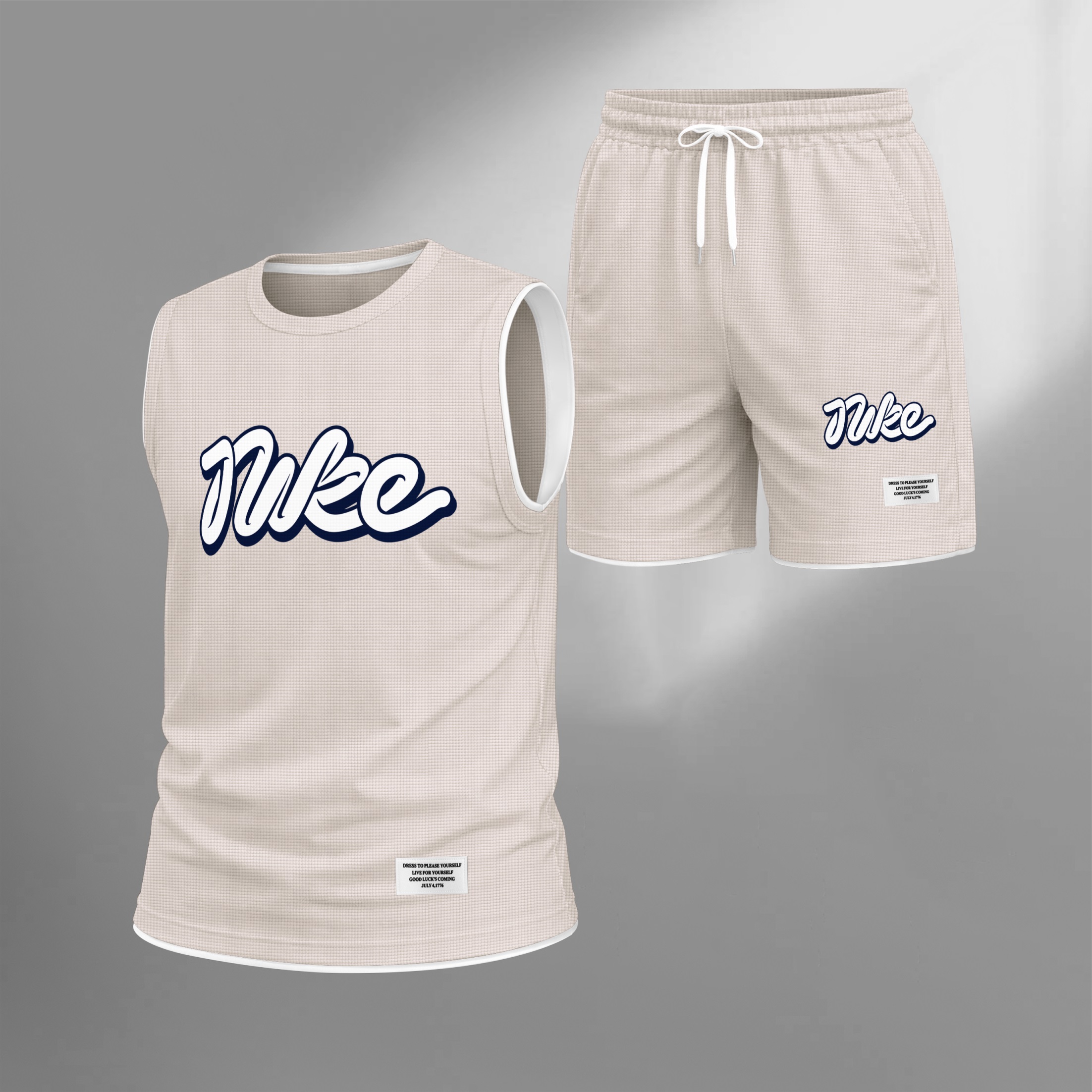 Men’s Graphic Letter Summer Set Sleeveless Tank Top & Shorts Matching Outfit, Lightweight Casual Streetwear Athletic Set for Everyday & Holiday