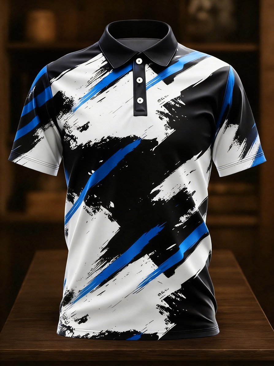 Men's Business Casual Art Button Short-Sleeve Polo Shirt