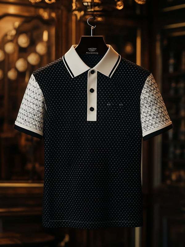 Men's Business Casual Printed Button Short Sleeve Polo Shirt