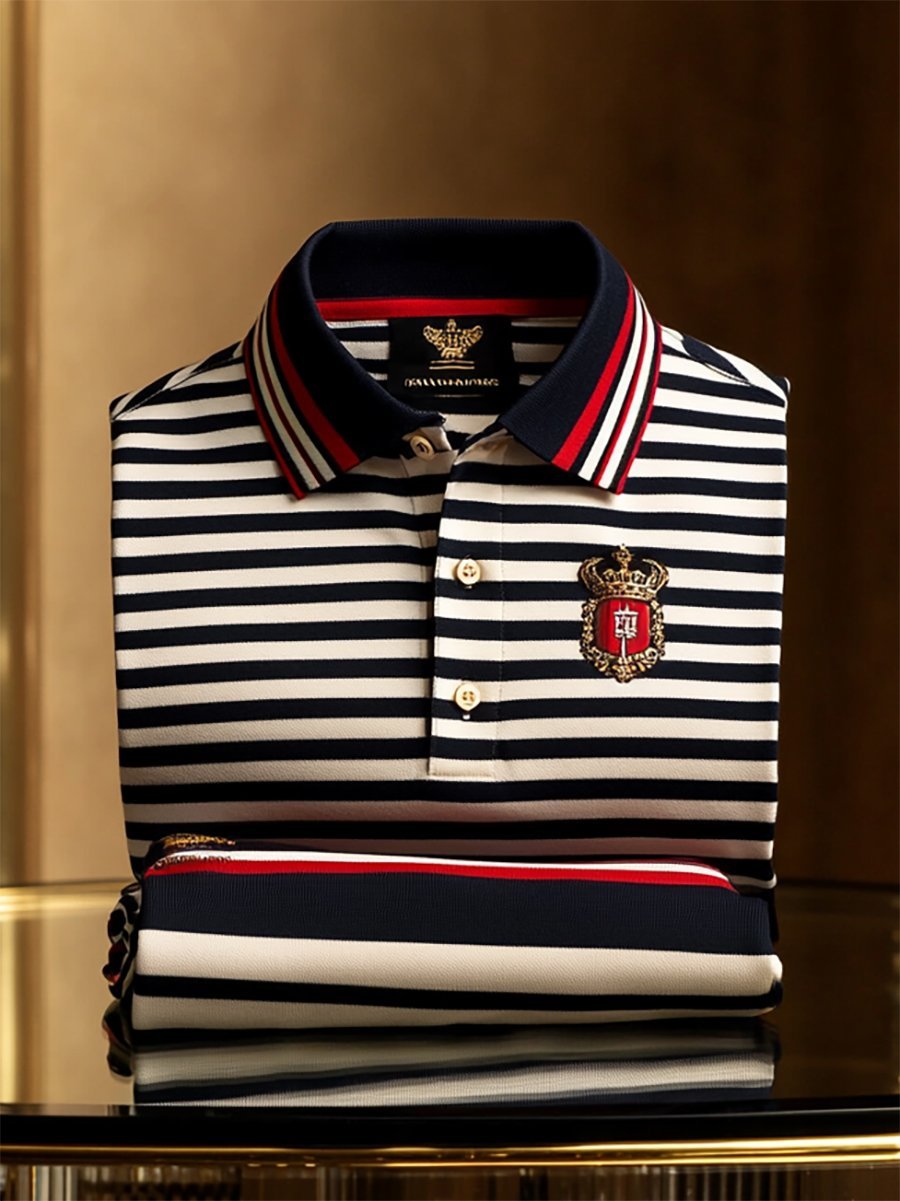 Men's Business Casual Striped Button Short Sleeve Polo Shirt
