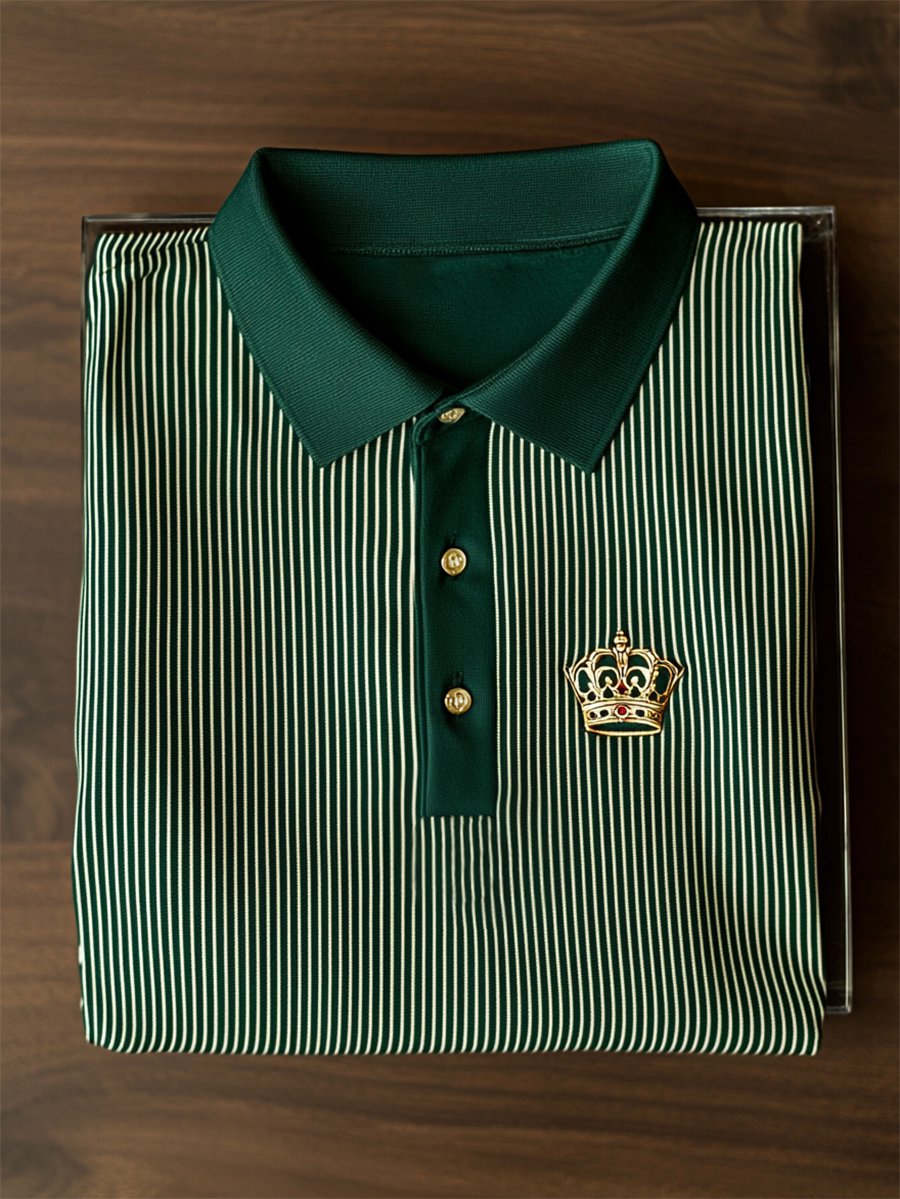 Men's Business Casual Striped Button Short Sleeve Polo Shirt