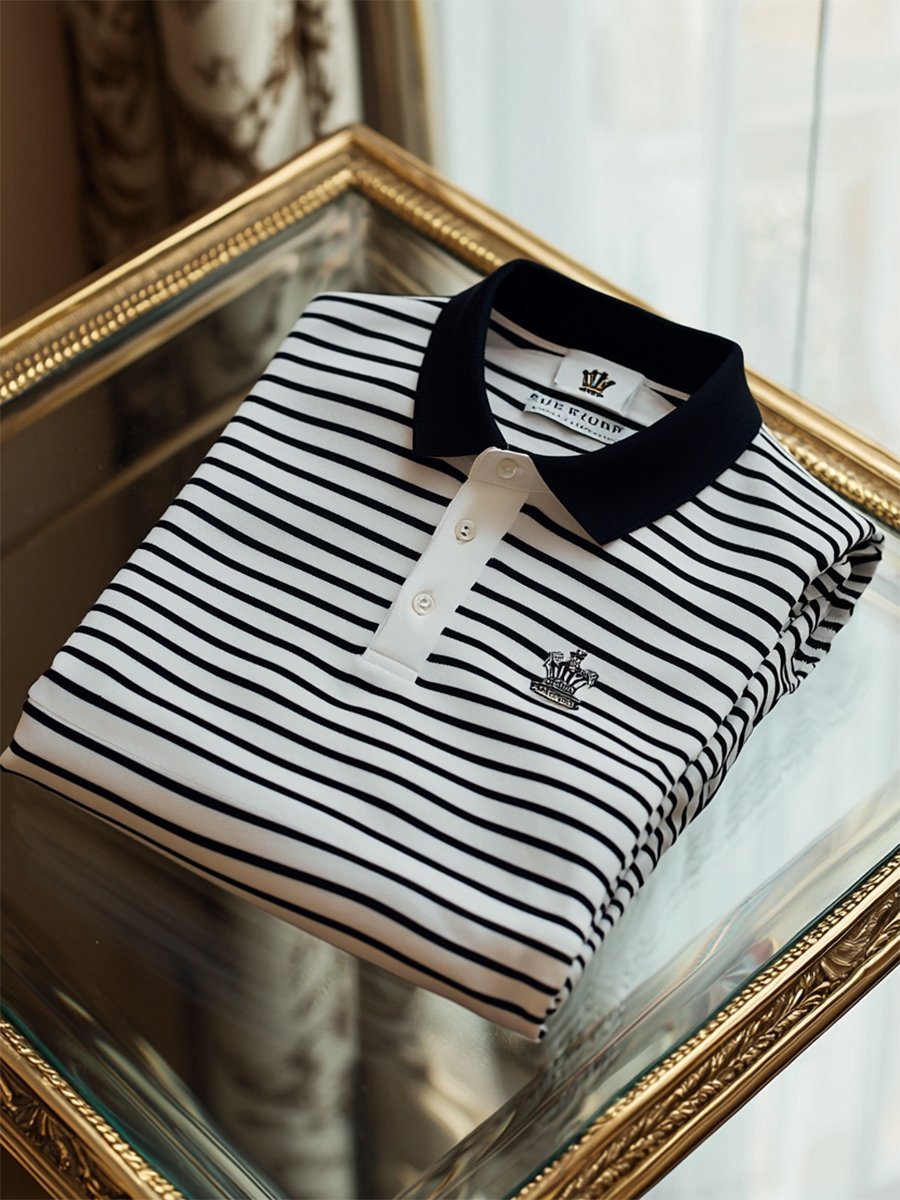 Men's Business Casual Striped Button Short Sleeve Polo Shirt