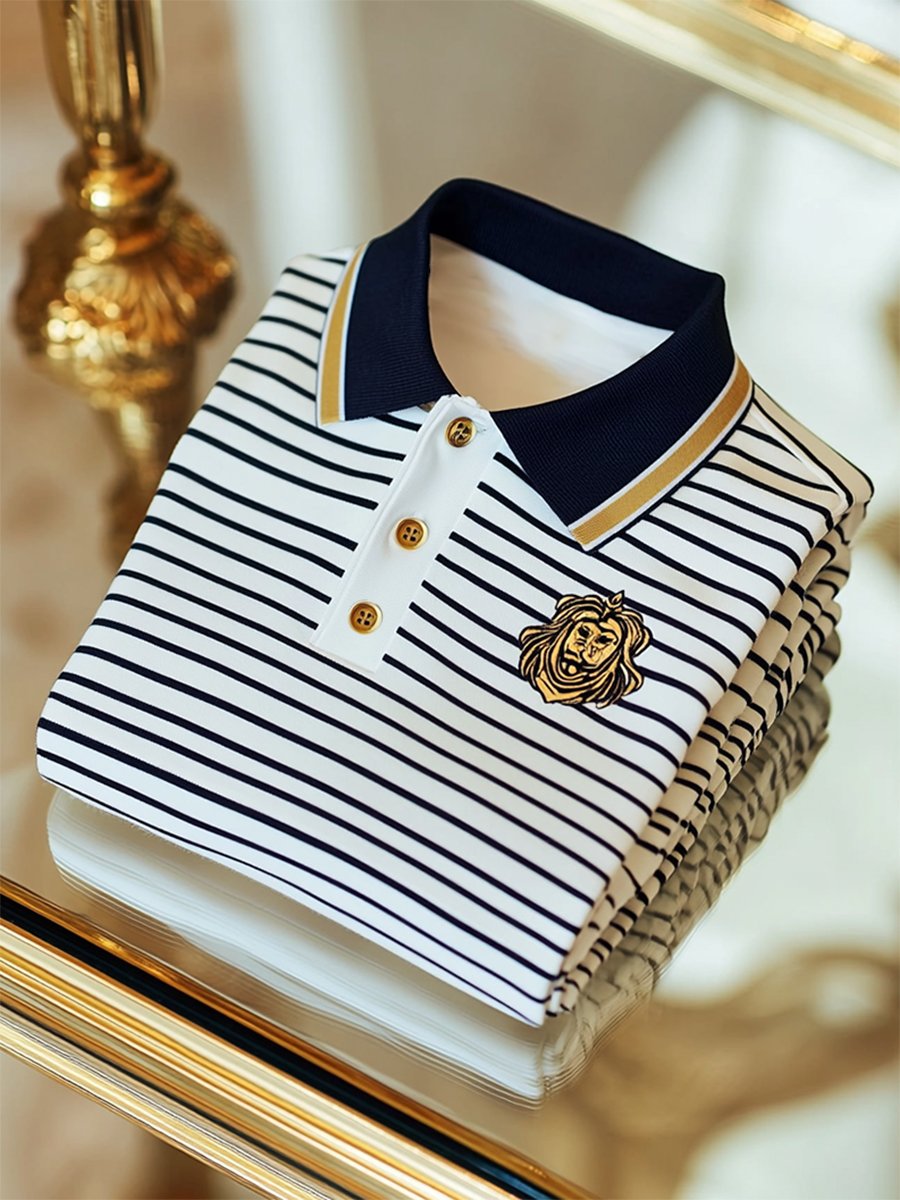Men's Business Casual Striped Button Short Sleeve Polo Shirt