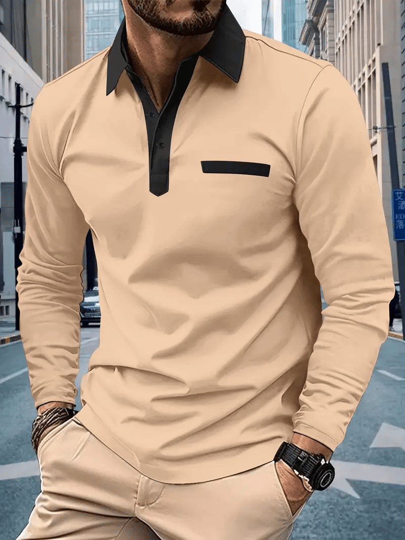 Men's Business Casual Striped Long-Sleeved Polo Shirt