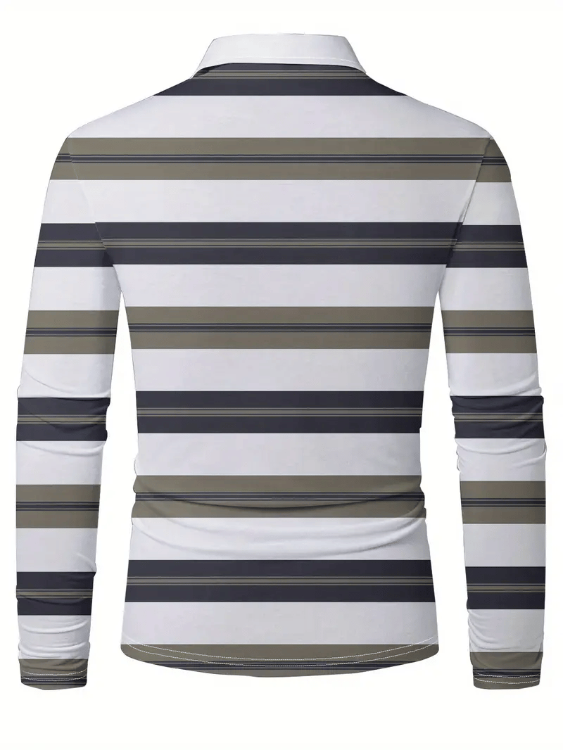 Men's Business Casual Striped Long-Sleeved Polo Shirt