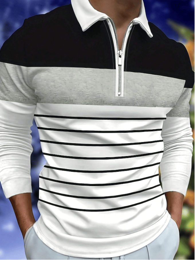Men's Business Casual Striped Zip-Up Shirt