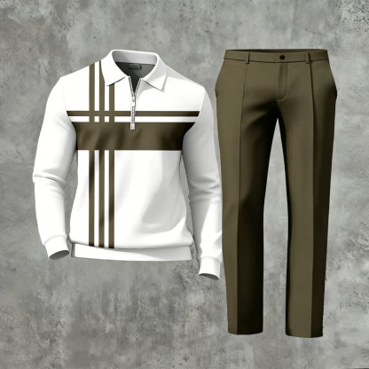 Men's Casual Dark Blue Geometric Printed Long-Sleeve And Pants Two-Piece Set