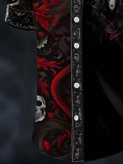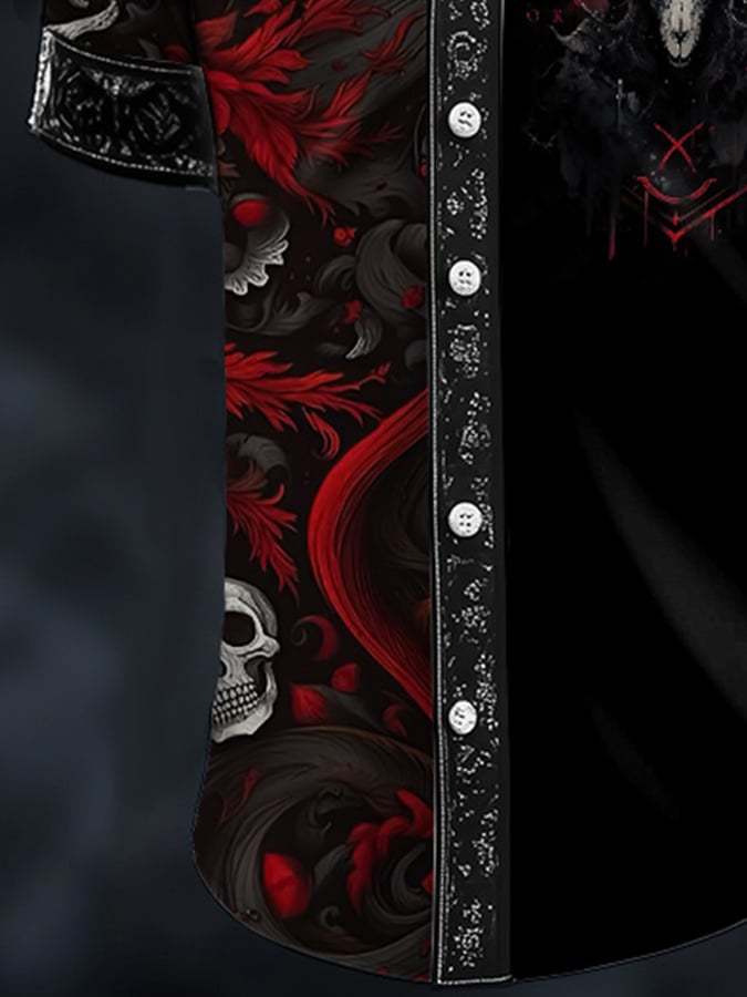 Men's Casual Dark Skull Demon Art Satin Shirt