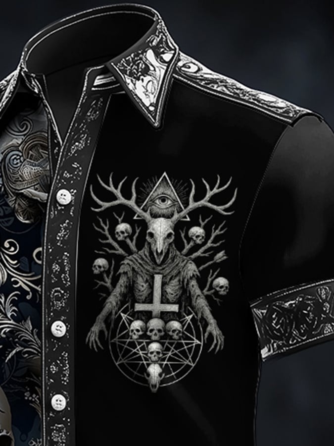 Men's Casual Dark Skull Demon Art Satin Shirt