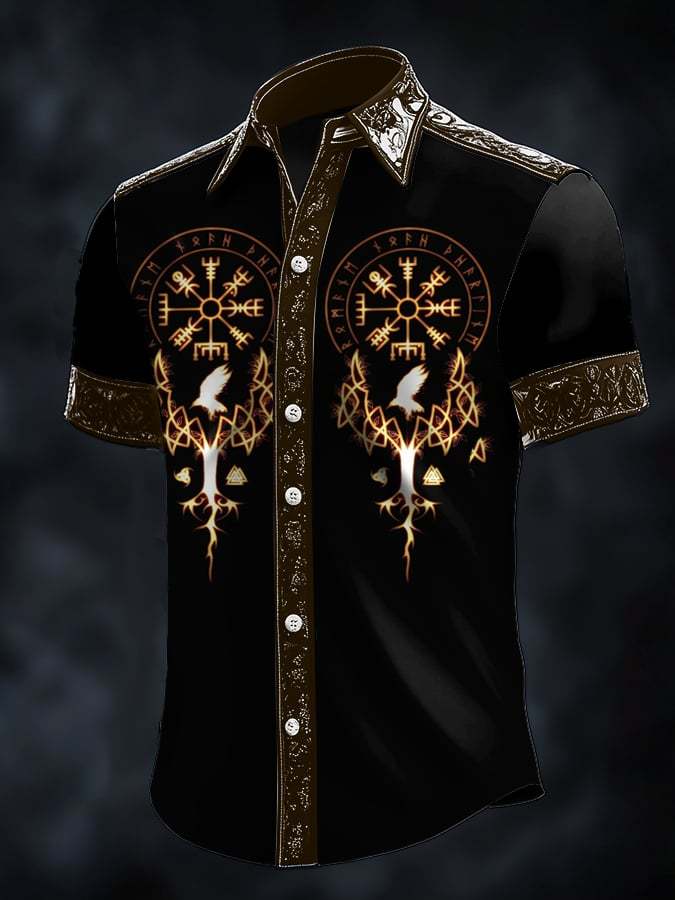 Men's Casual Dark Viking Print Satin Shirt