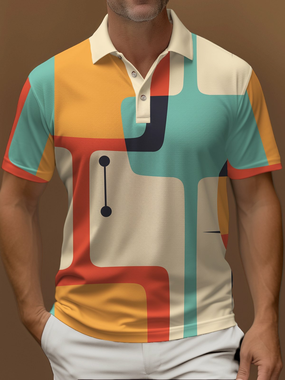 Men's Casual Fashion Contrast Color Hawaiian Polo Shirt