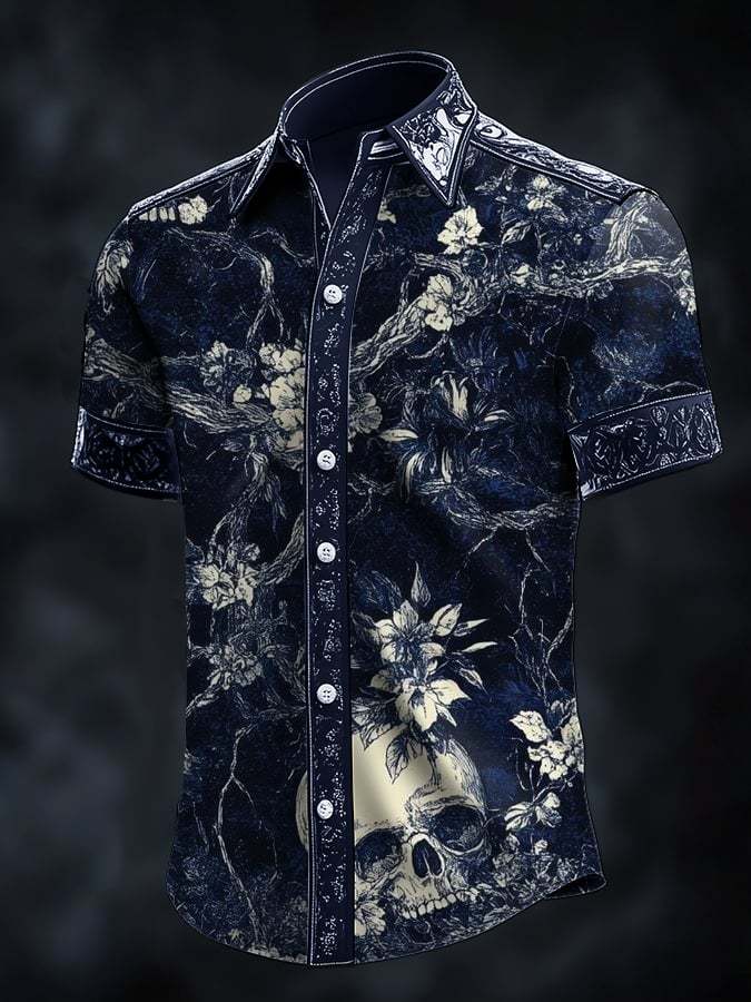 Men's Casual Fashion Dark Pattern Cross Crow Contrast Satin Shirt
