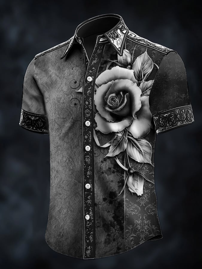 Men's Casual Fashion Dark Pattern Crow Contrast Satin Shirt