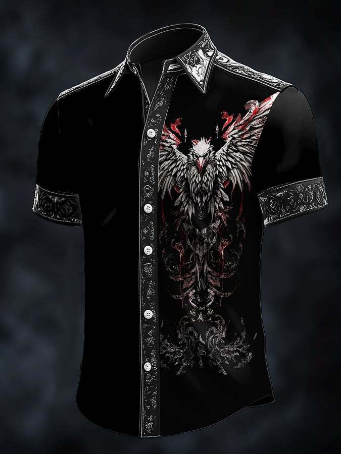 Men's Casual Vintage Viking Raven Satin Shirt