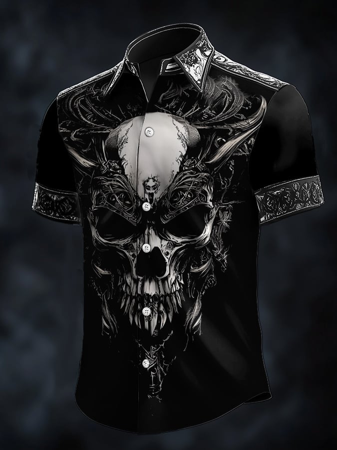 Men's Casual Vintage Viking Skull Satin Shirt