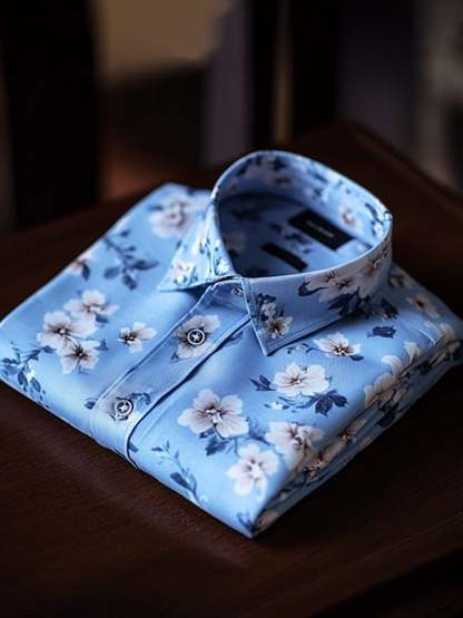 Men's Casual Watercolor Floral Print Long Sleeve Shirt