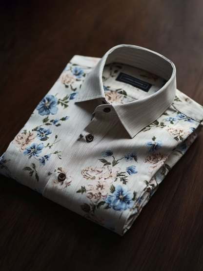 Men's Casual Watercolor Floral Print Long Sleeve Shirt