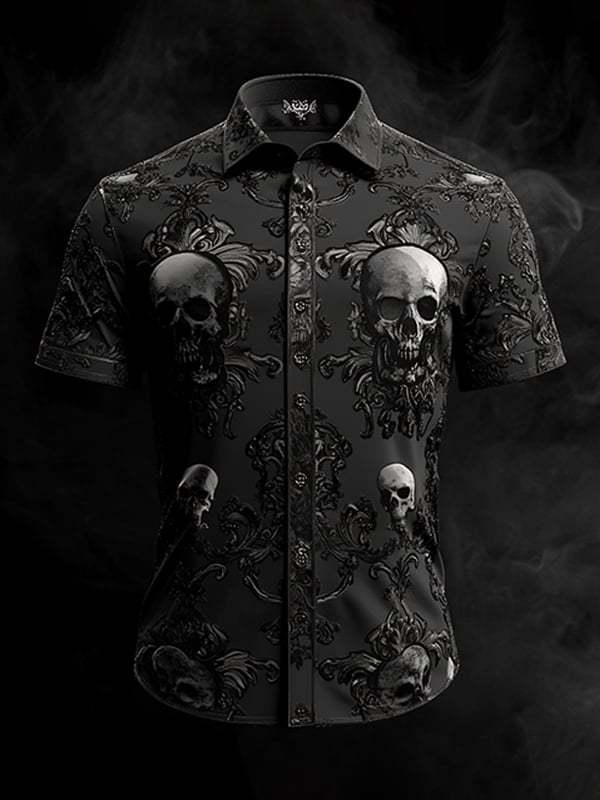 Men's Dark Gothic Skull Pattern Short Sleeve Shirt