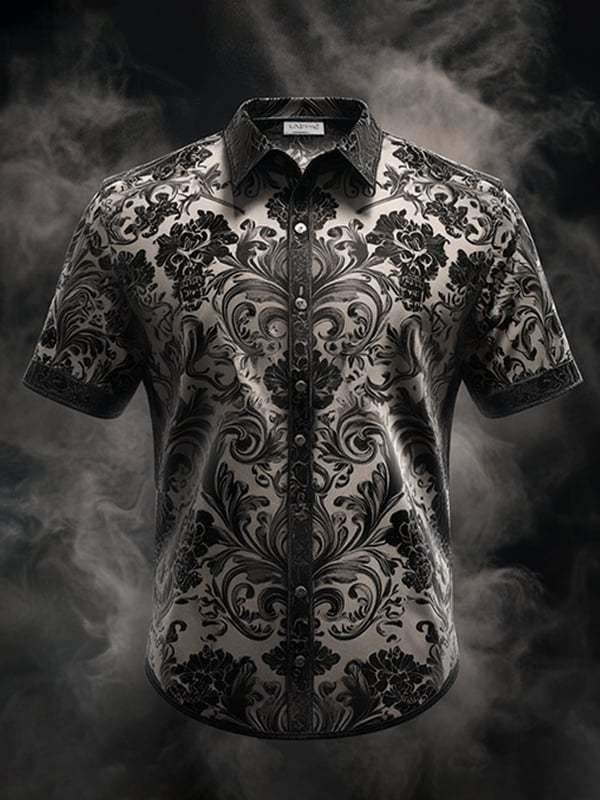 Men's Dark Gothic Skull Pattern Short Sleeve Shirt