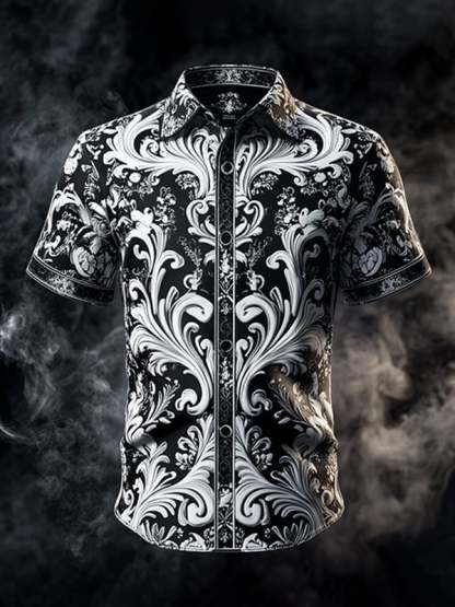 Men's Dark Gothic Skull Pattern Short Sleeve Shirt