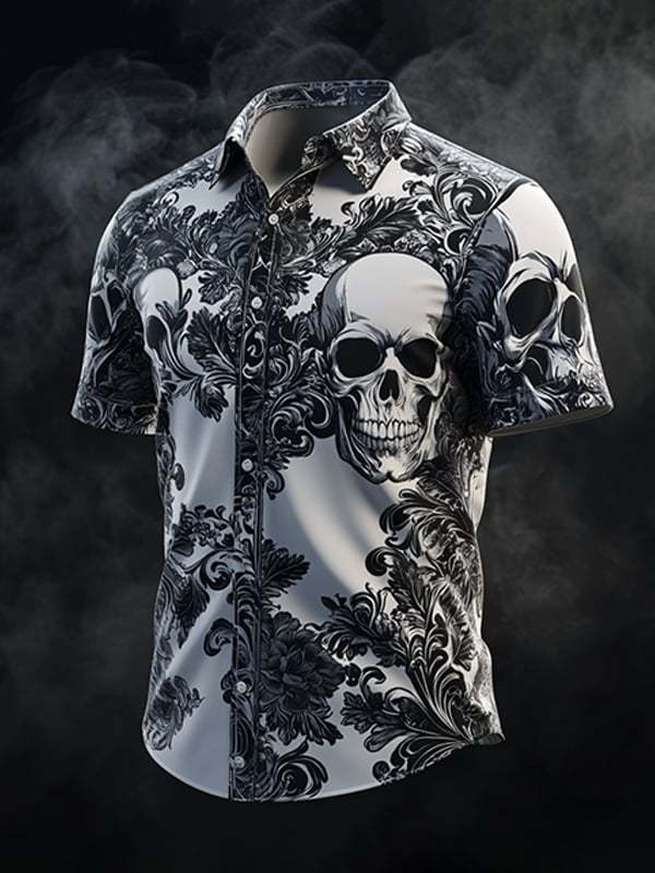 Men's Dark Gothic Skull Pattern Short Sleeve Shirt