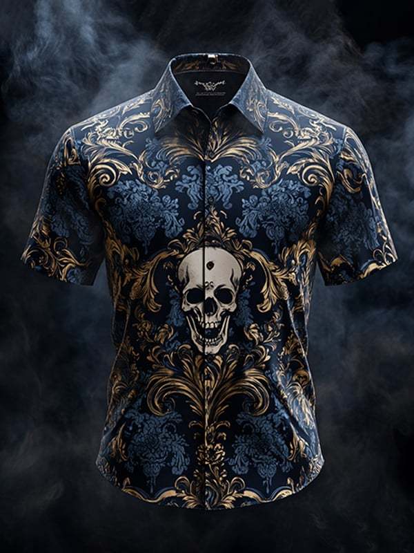 Men's Dark Gothic Skull Pattern Short Sleeve Shirt