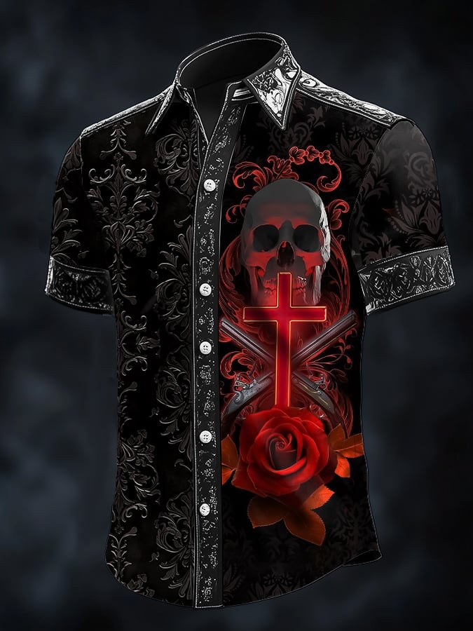 Men's Dark Skull Faith Print Satin Shirt