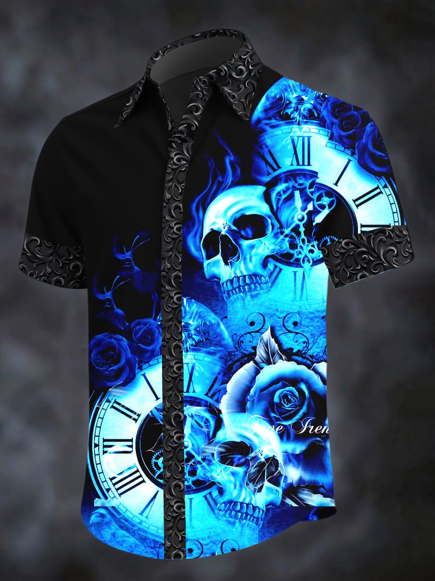 Men's Dark Skull Print Casual Short Sleeve Shirt