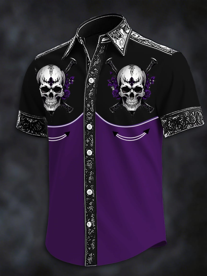 Men's Dark Skull Print Casual Short Sleeve Shirt