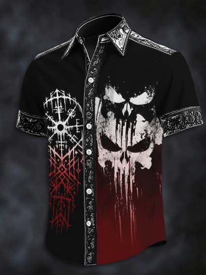 Men's Dark Skull Print Casual Short Sleeve Shirt